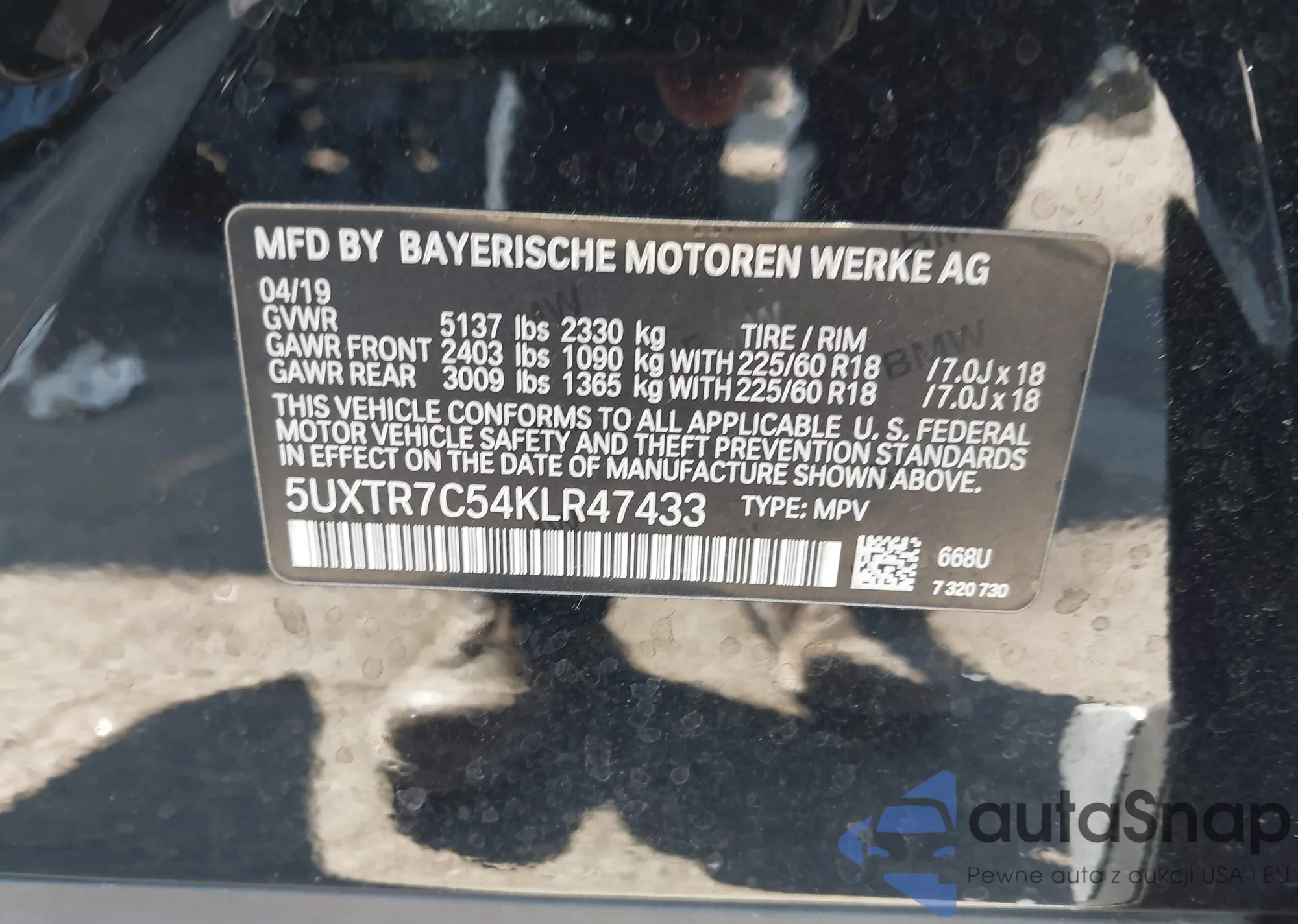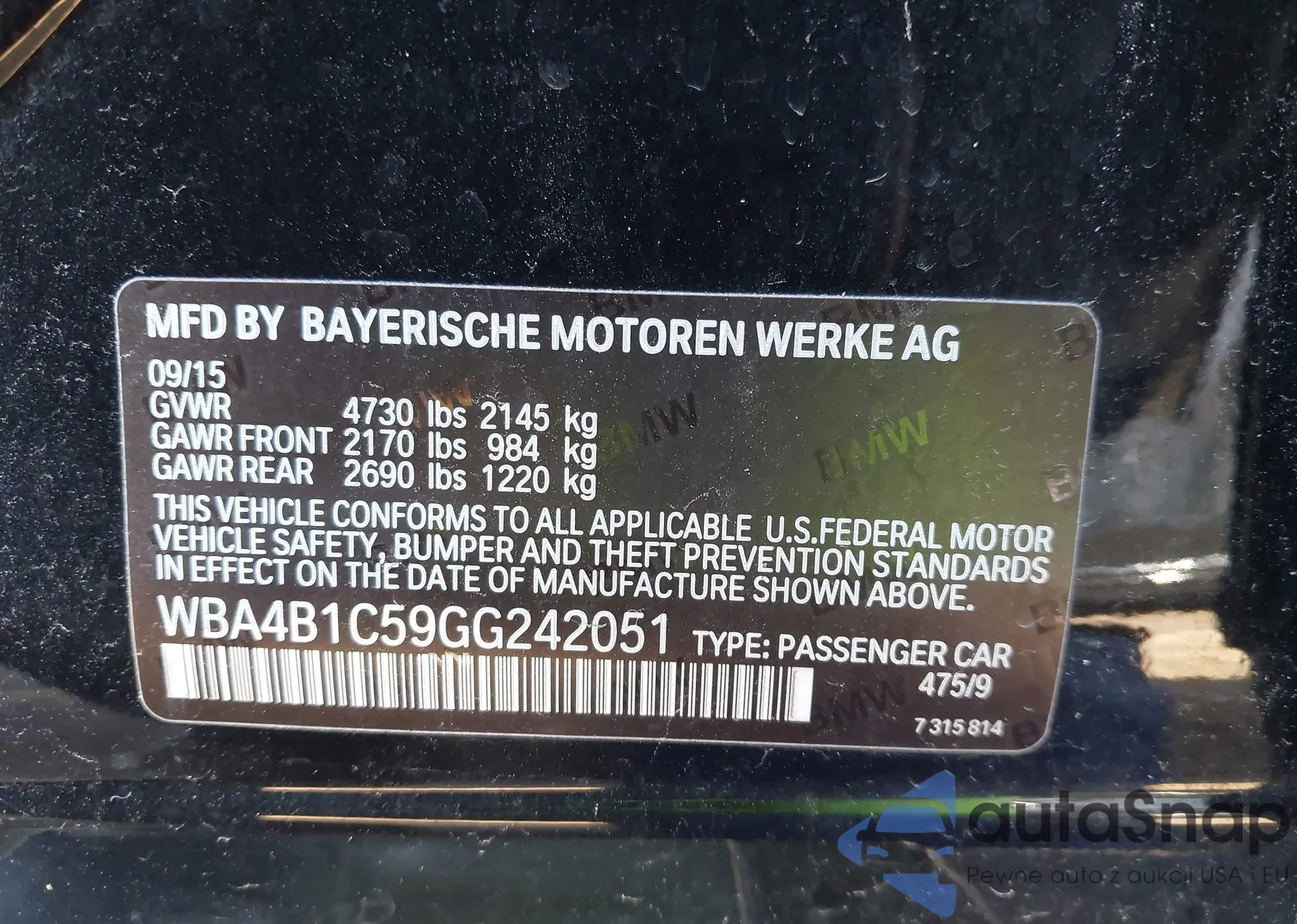 • VIN WBA13AG00MCG65301