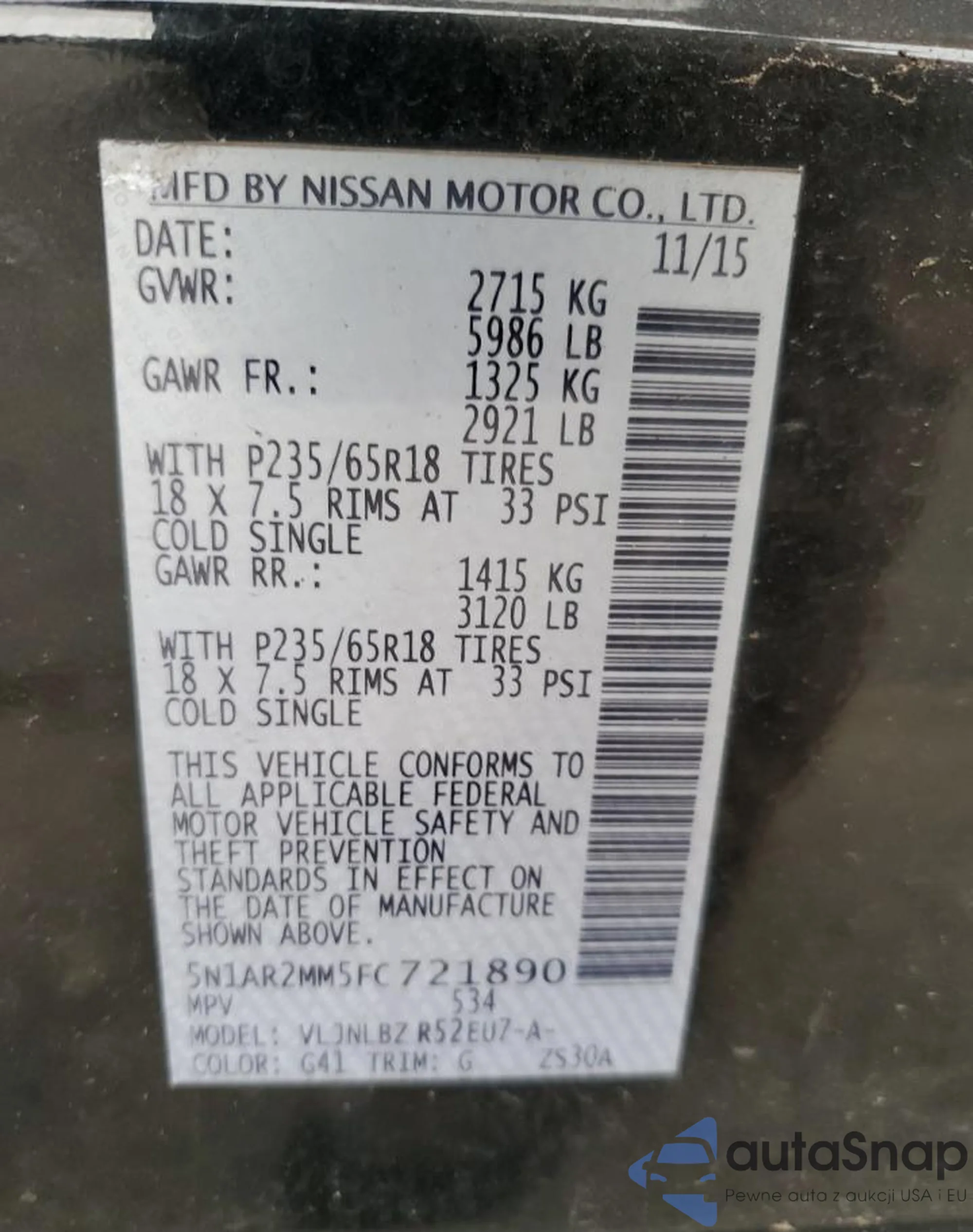 LOT: 82734765 VIN: 5N1AT2MT7JC780957