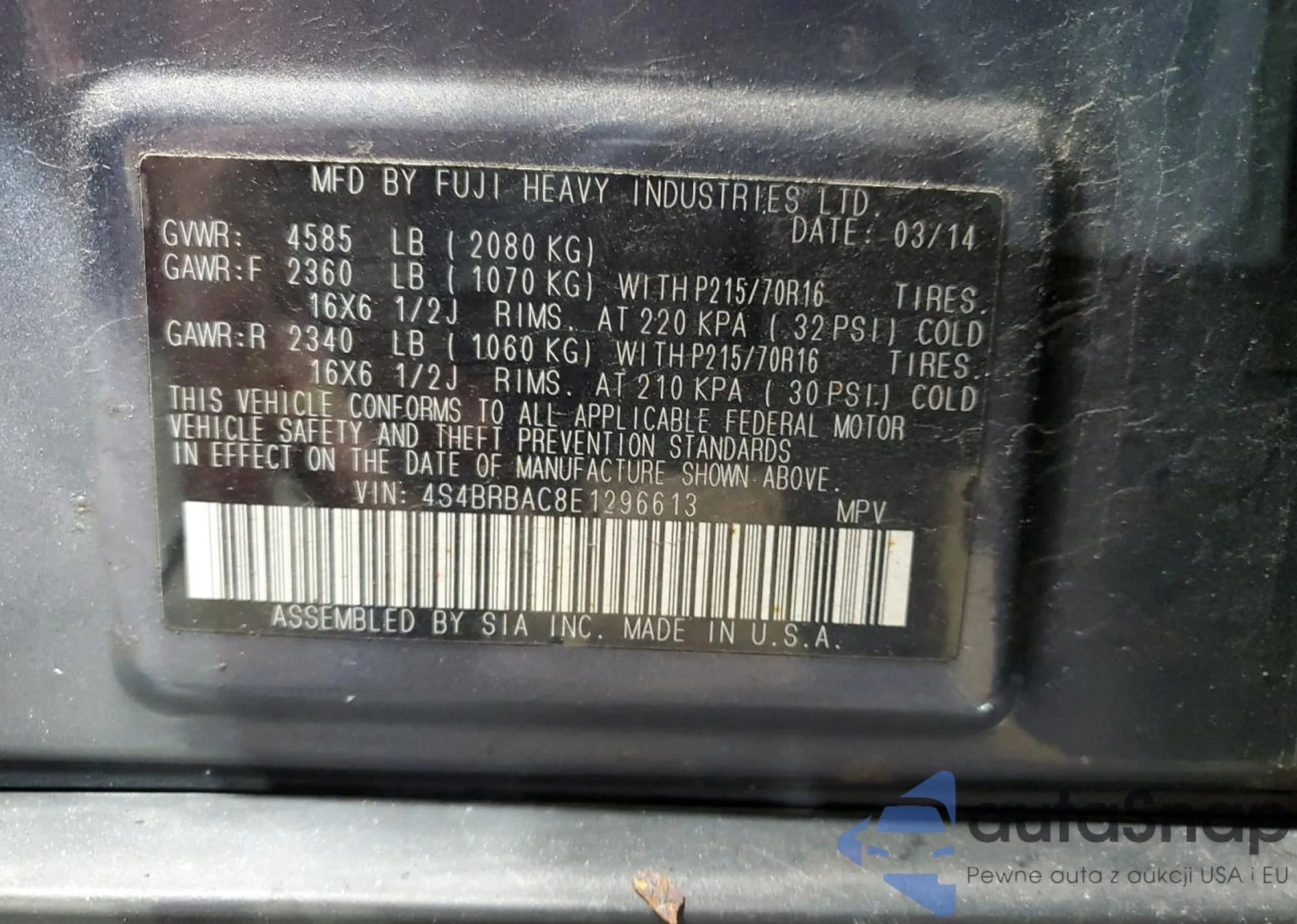 • VIN 4S4BRBAC8E1296613