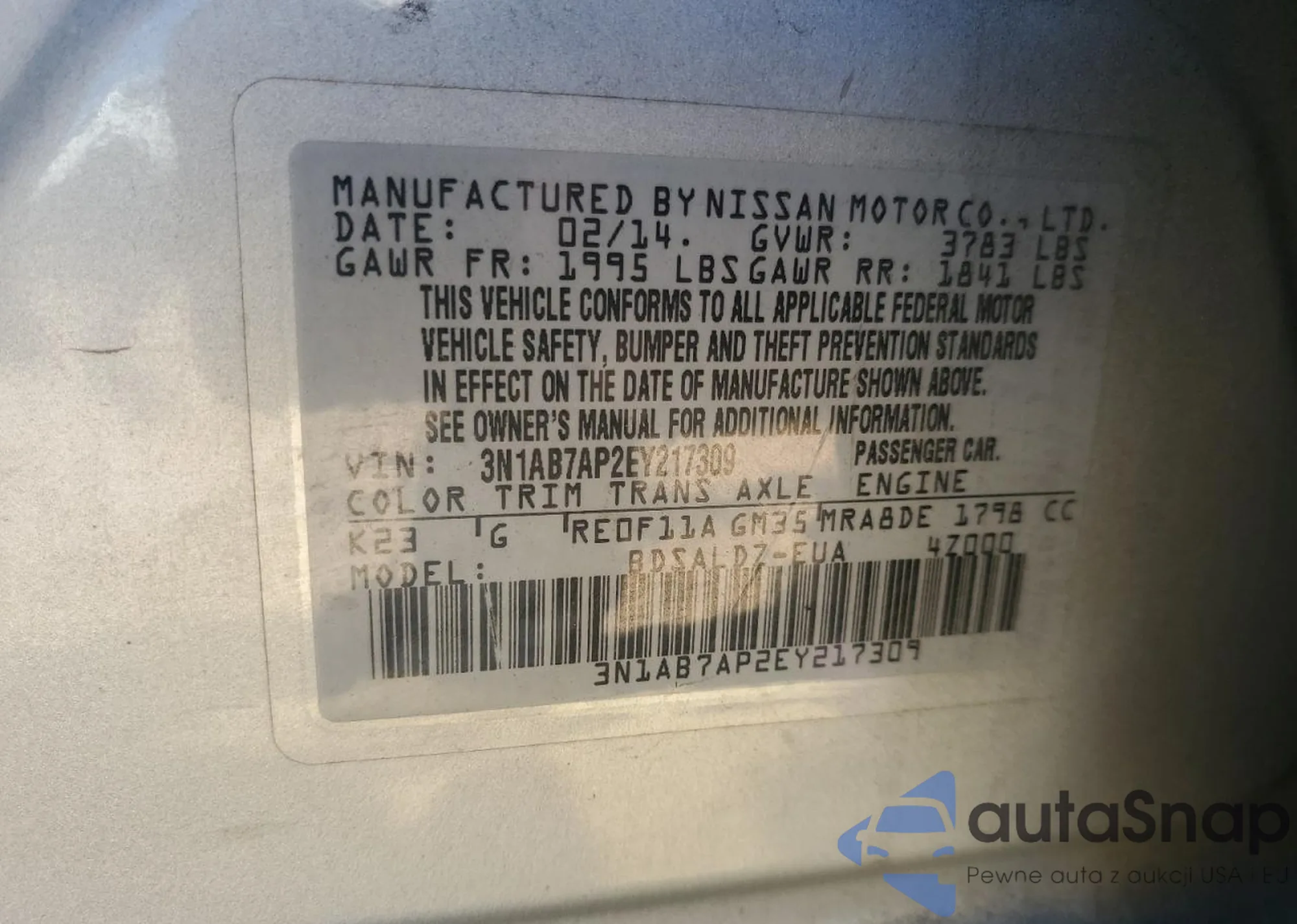 • VIN 3N1AB6AP6CL702301