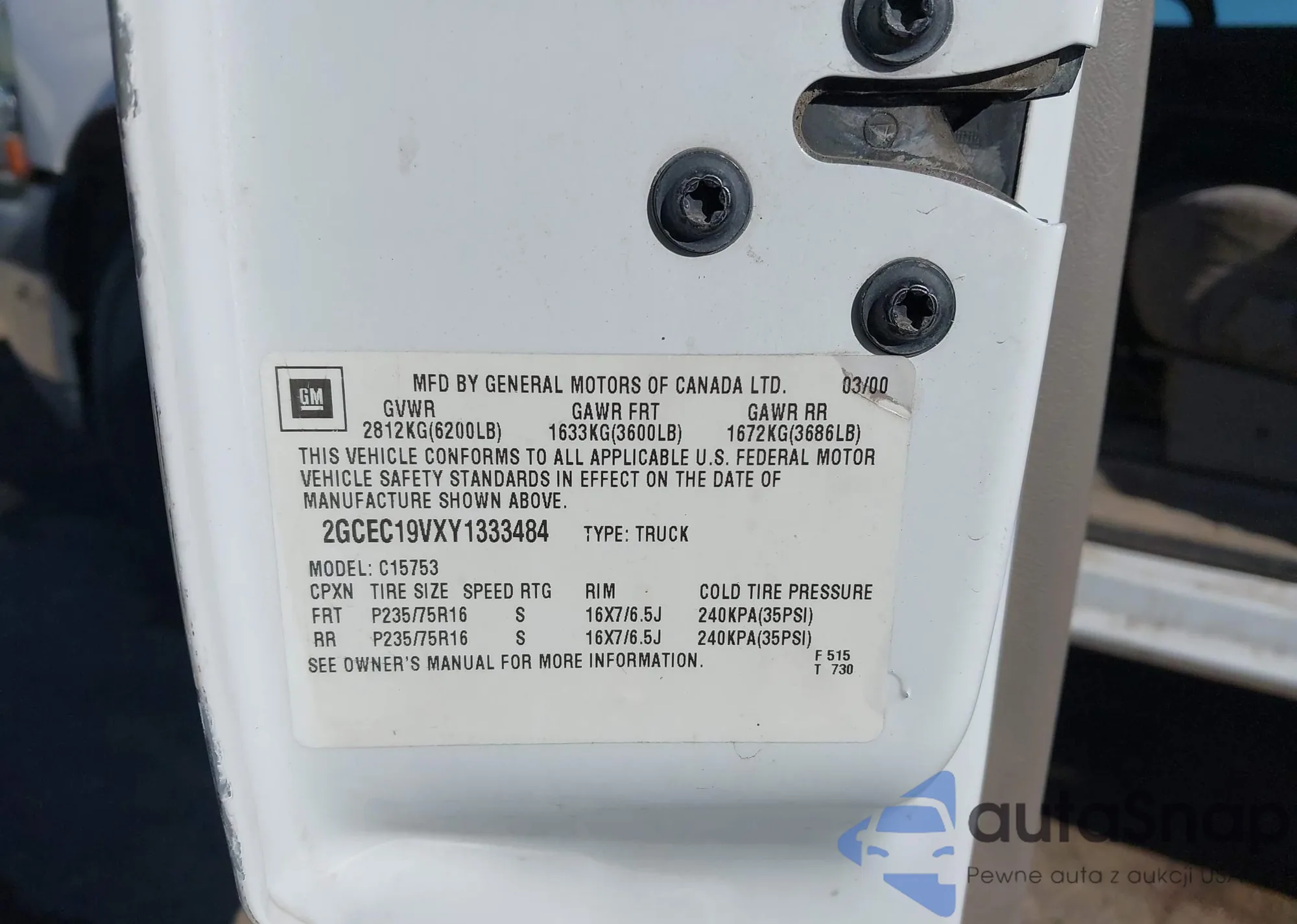 LOT: 43652735 VIN: 2GCEC19VXY1333484