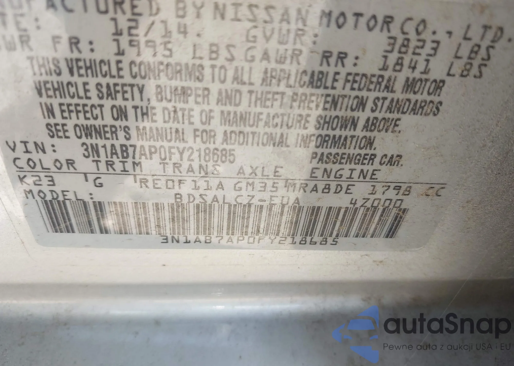 • VIN 3N1AB7AP0FY218685