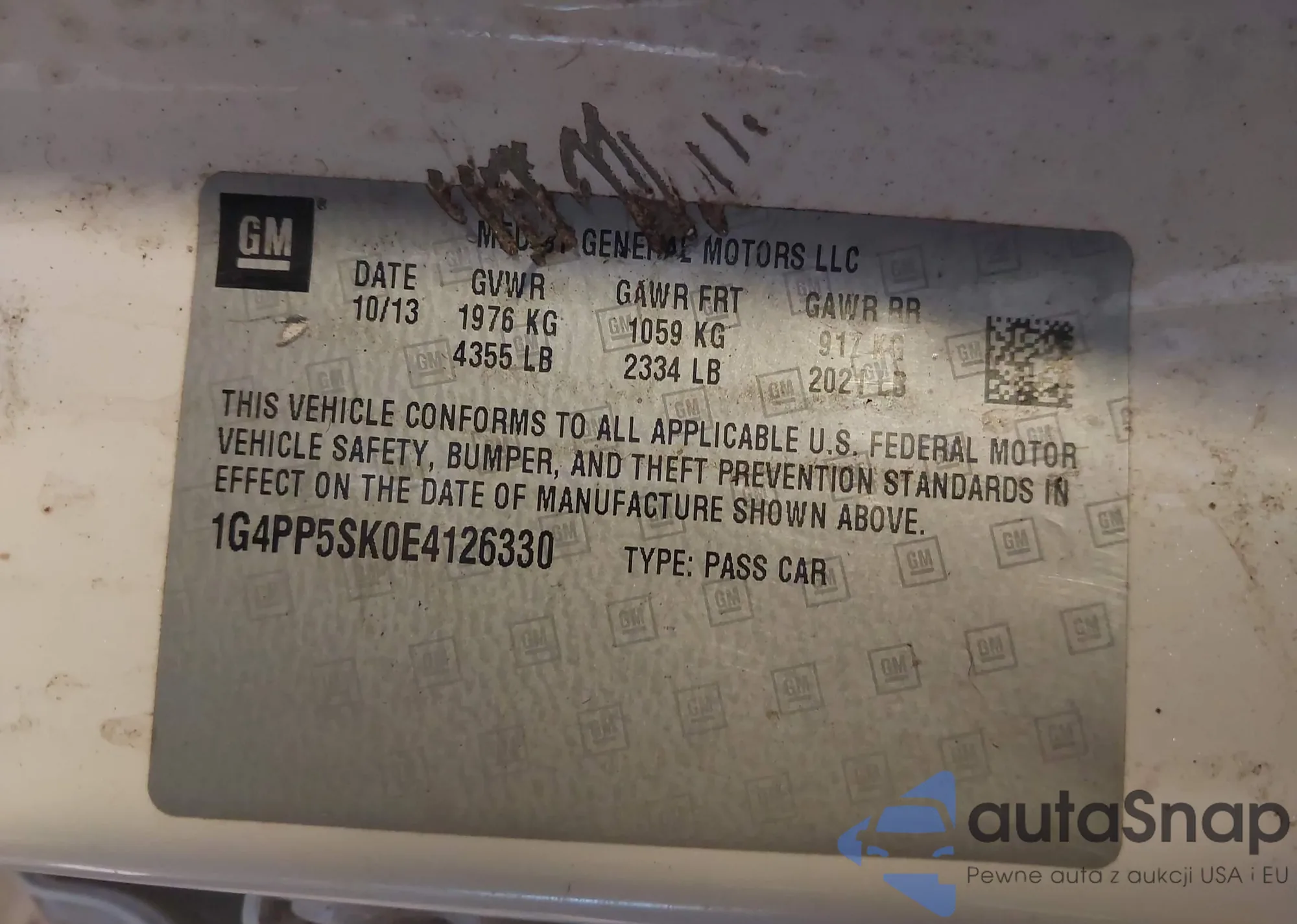 LOT: 43471464 VIN: 1G4PP5SK0E4126330