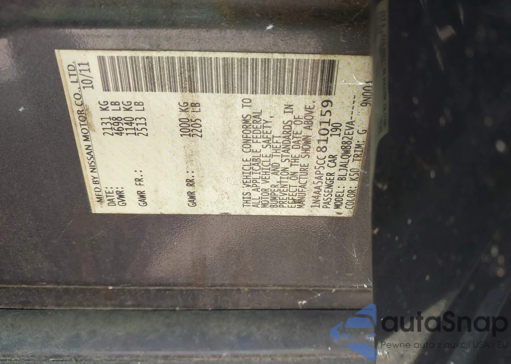 LOT: 43502711 VIN: 1N4AA5AP5CC810159