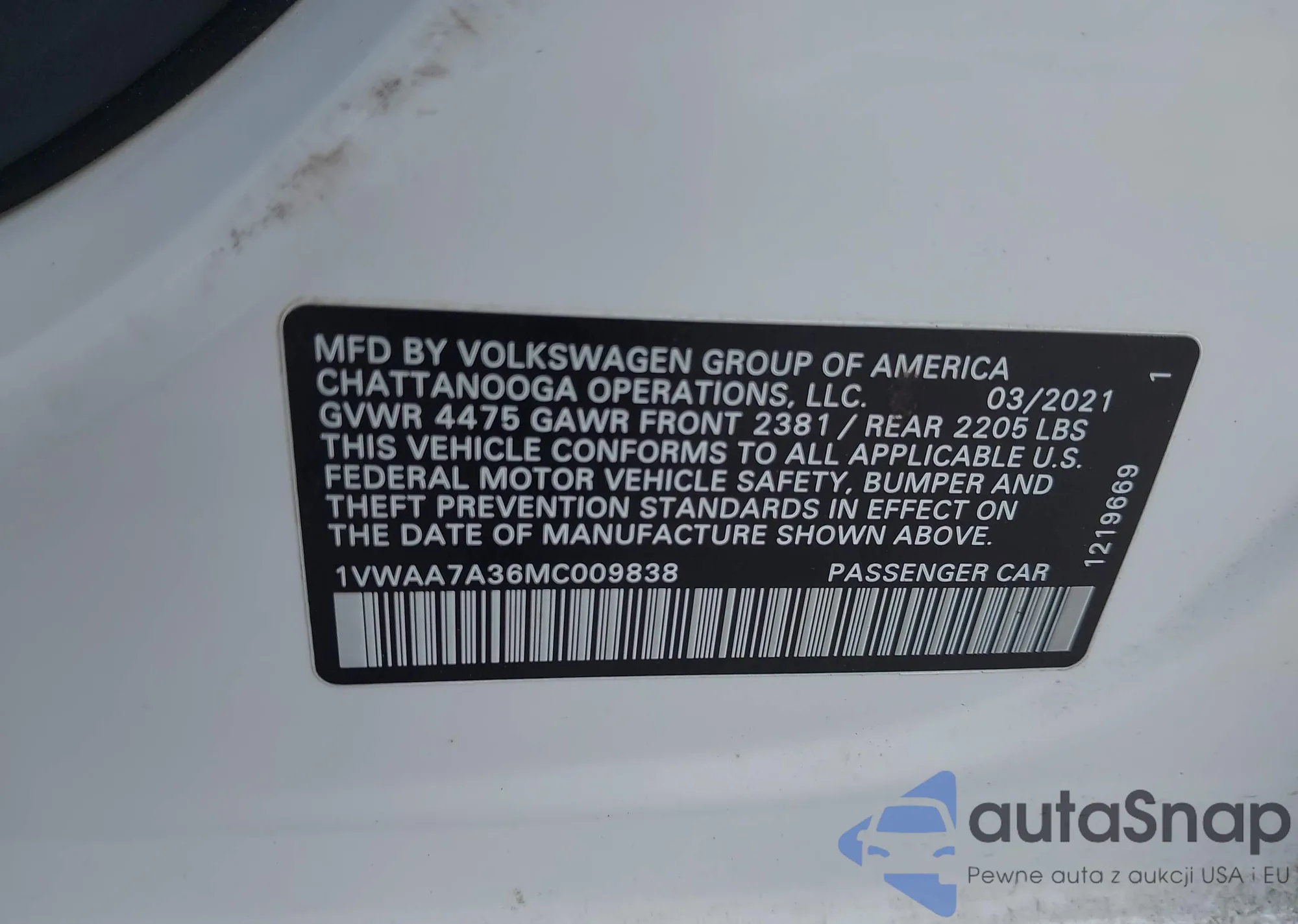 • VIN 1VWAA7A36MC009838