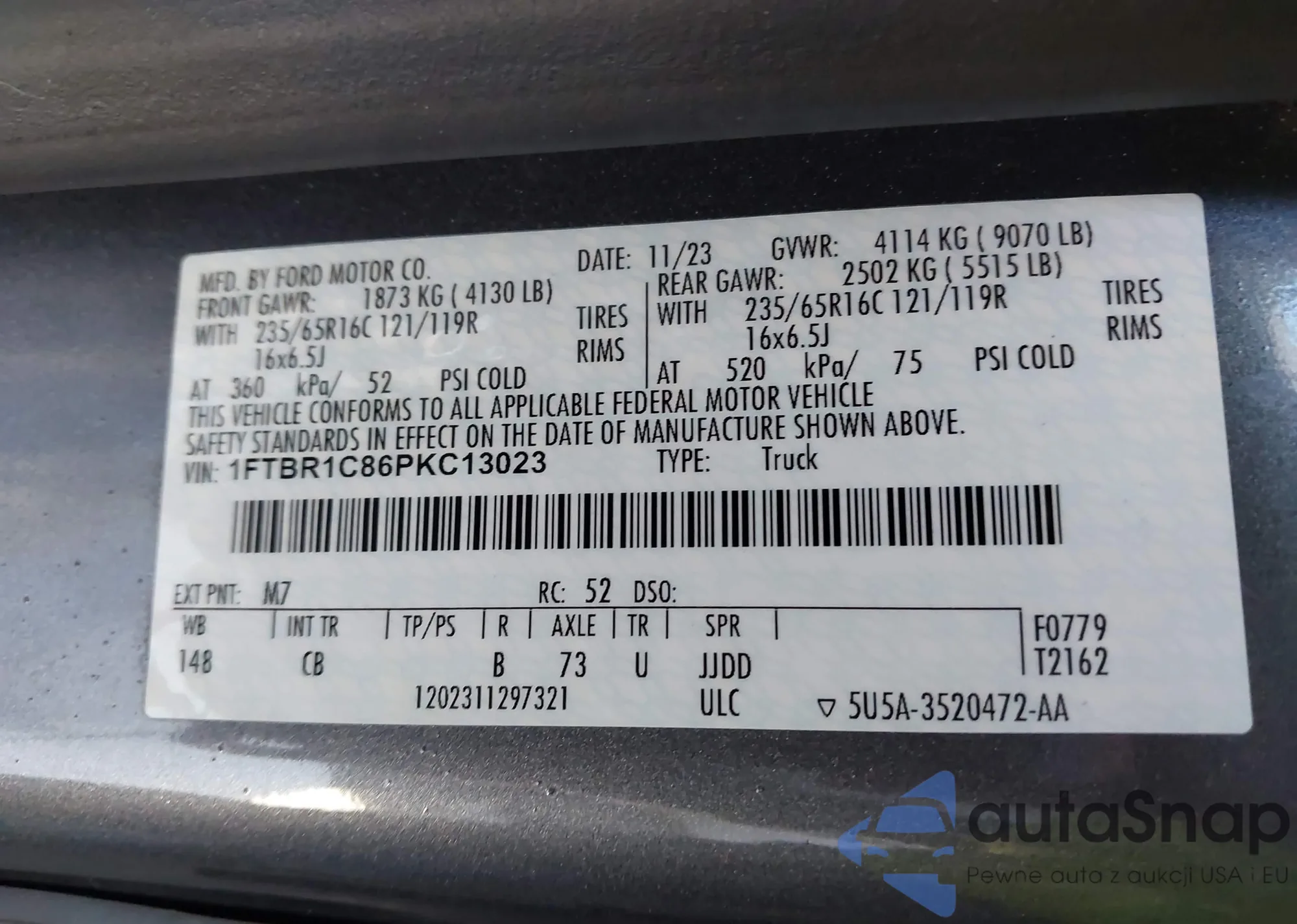 LOT: 43372179 VIN: 1FTBR1C86PKC13023