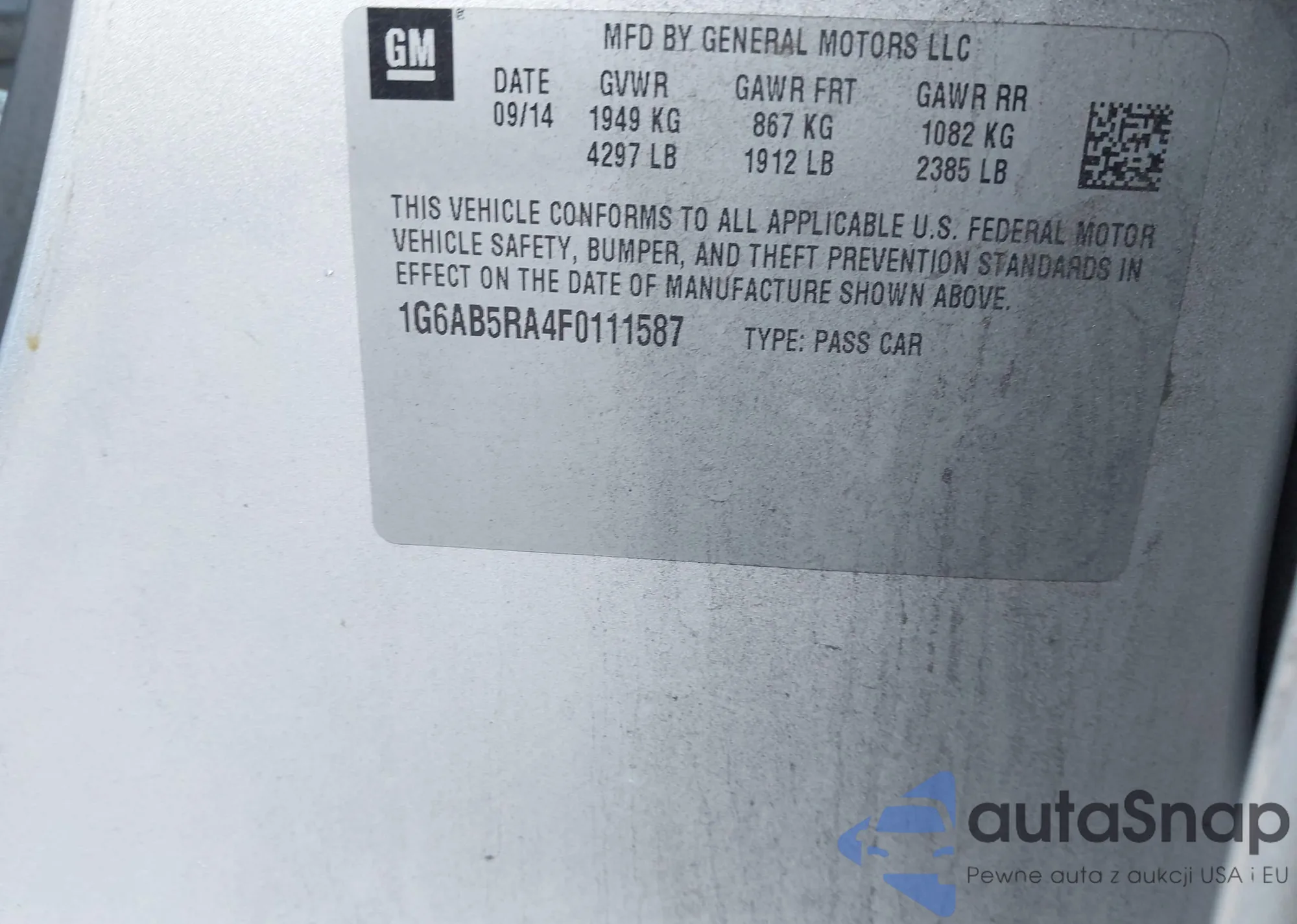LOT: 43421369 VIN: 1G6AB5RA4F0111587