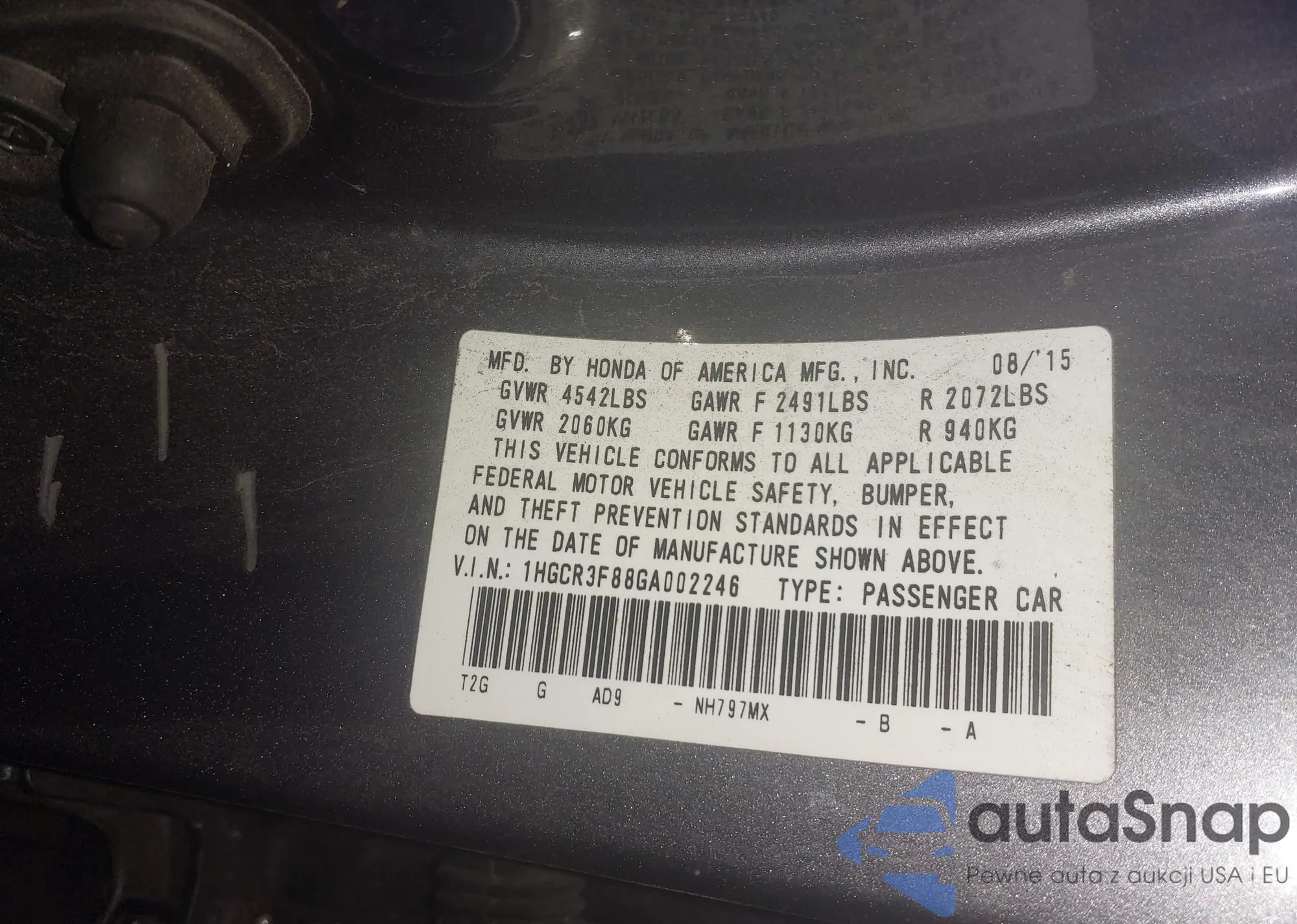 • VIN 1HGCR3F88GA002246