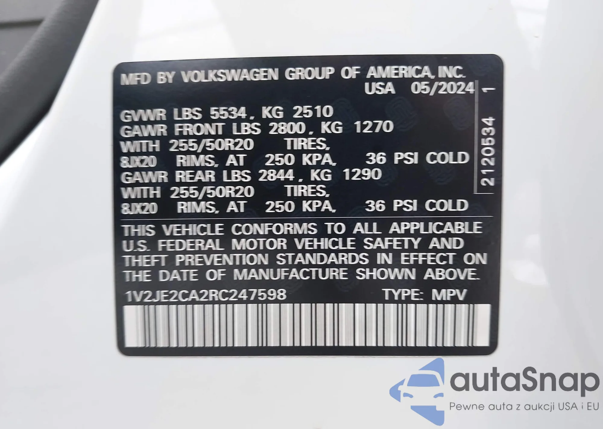 • VIN 1V2JE2CA2RC247598