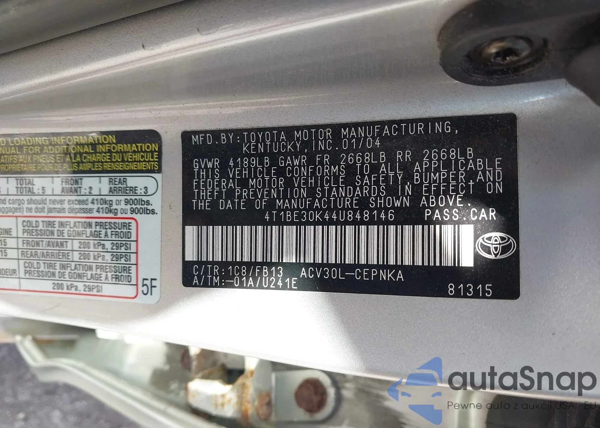 • VIN 4T1BE30K44U848146