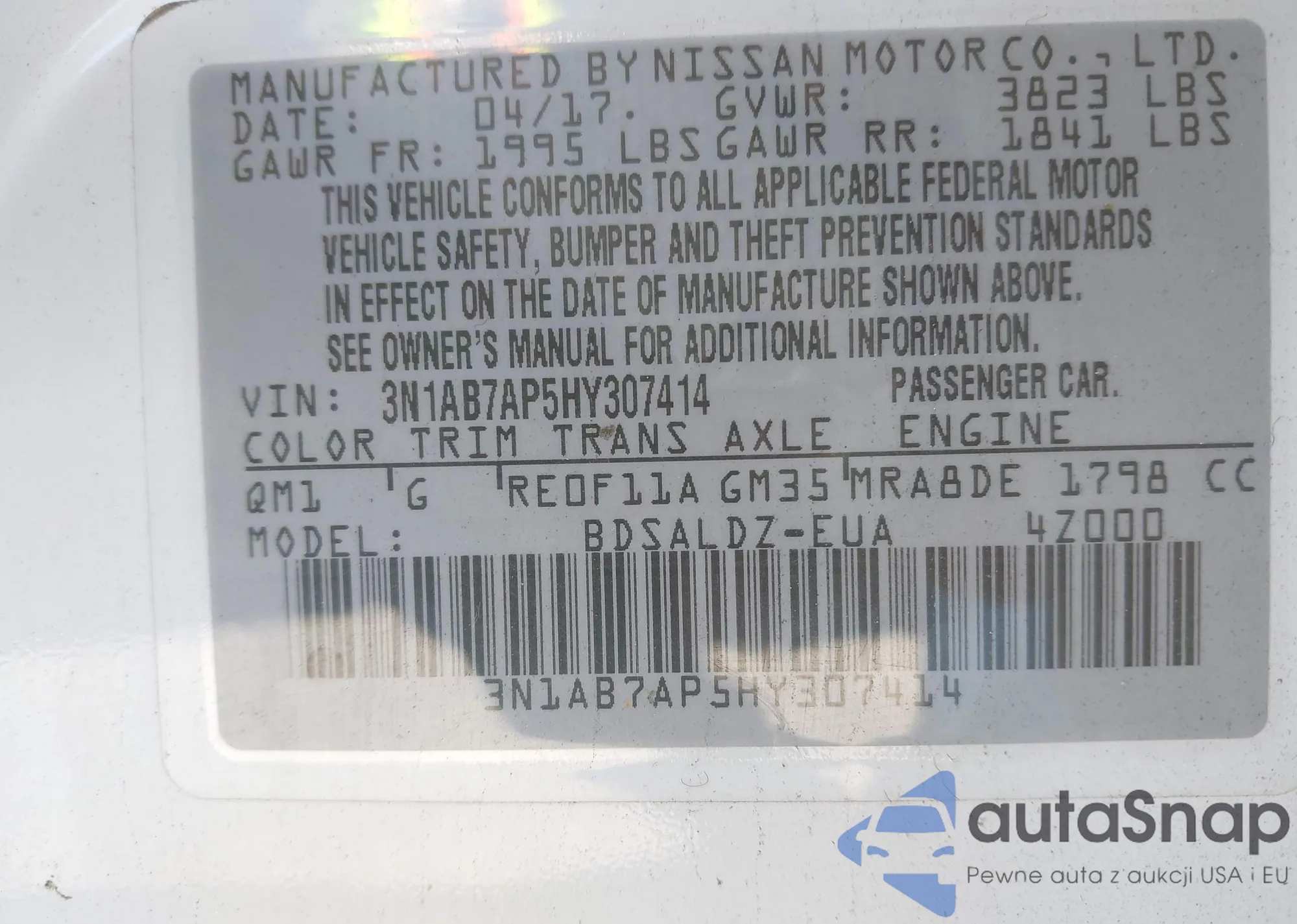 • VIN 3N1AB7AP5HY307414