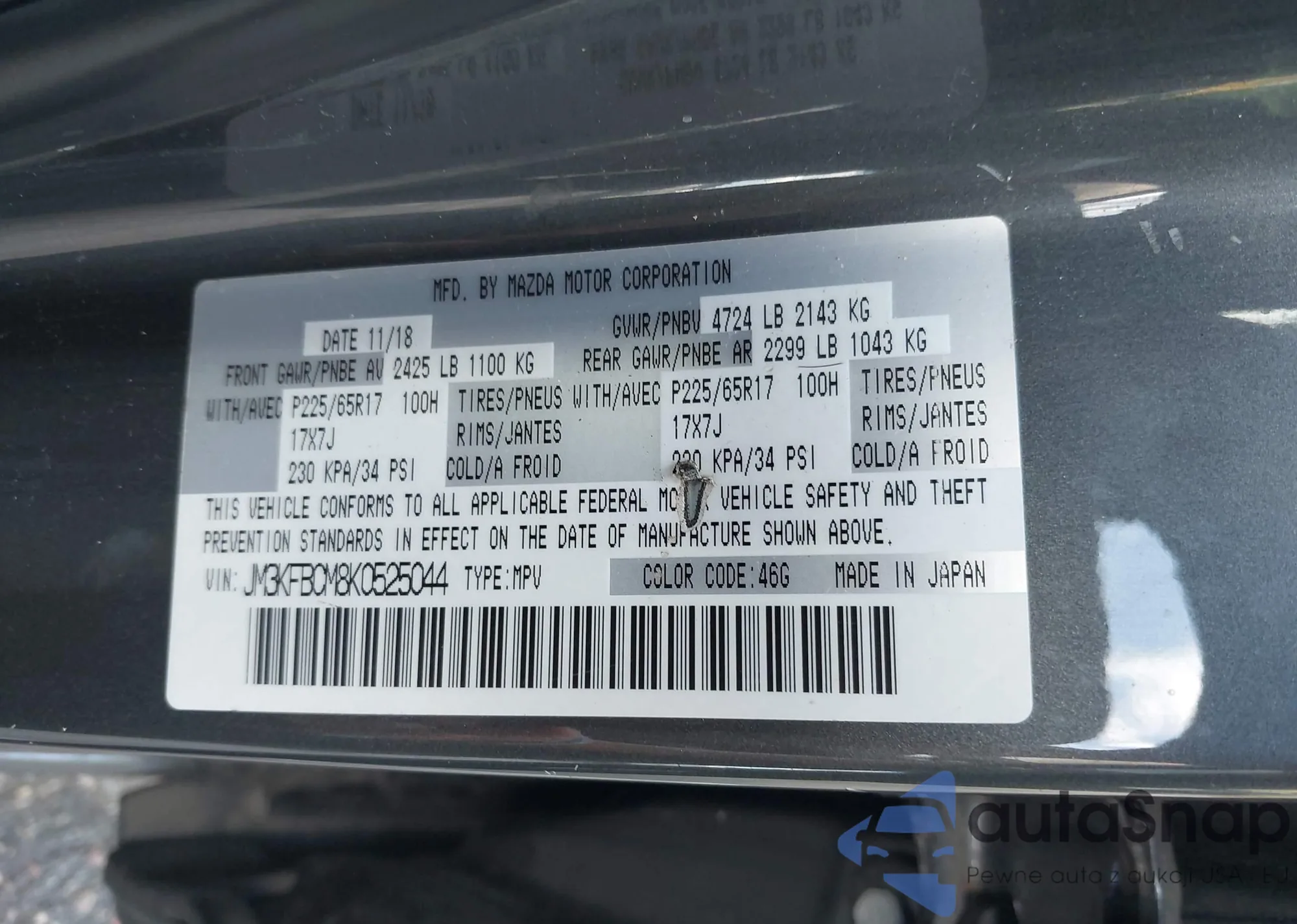 LOT: 43313598 VIN: JM3KFBCM8K0525044