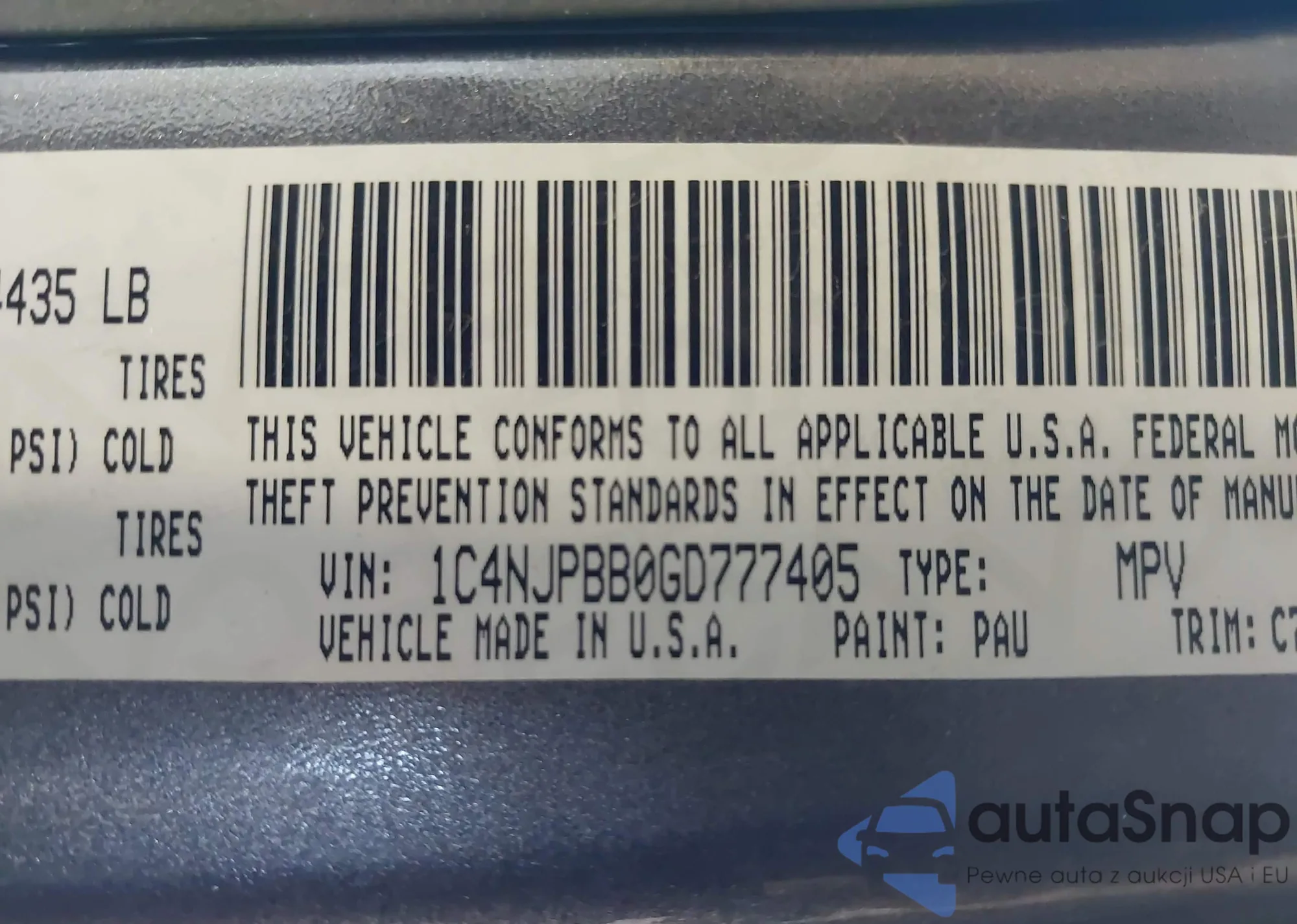 • VIN 1C4NJPBB0GD777405