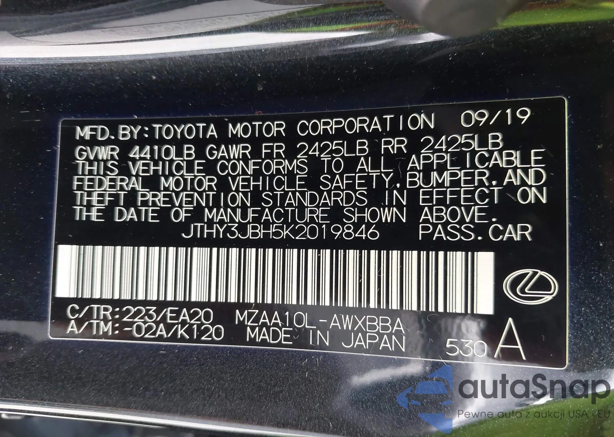 • VIN JTEAAAAH2MJ067089