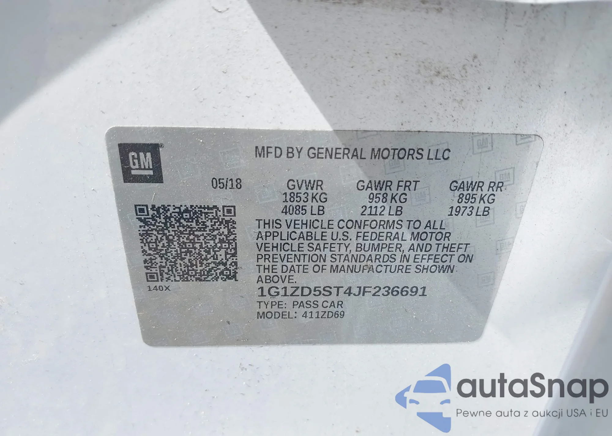 • VIN 1G1ZD5ST4JF236691