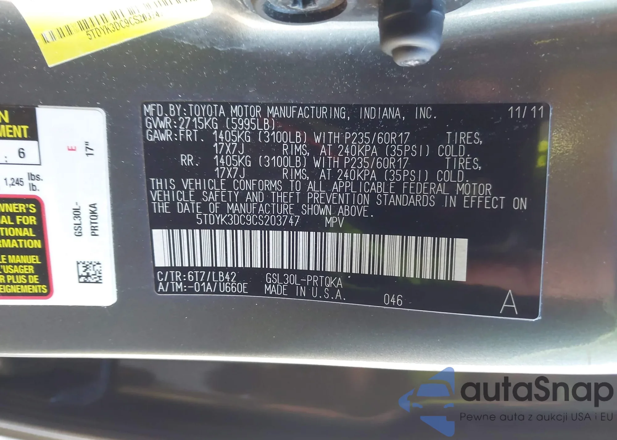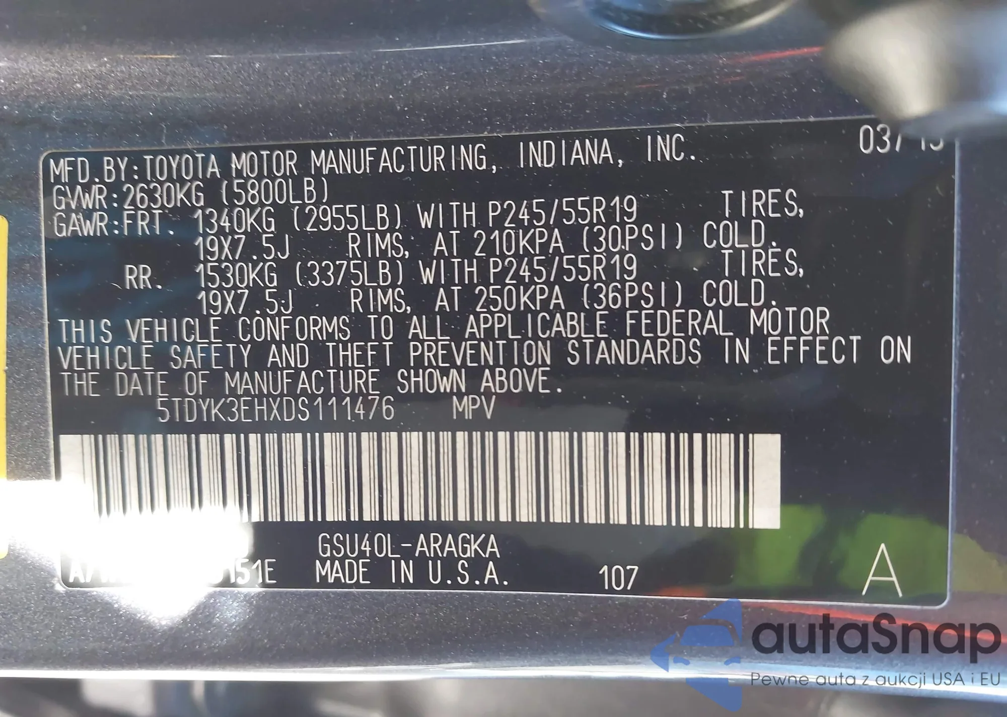 • VIN 5TDYK3EHXDS111476