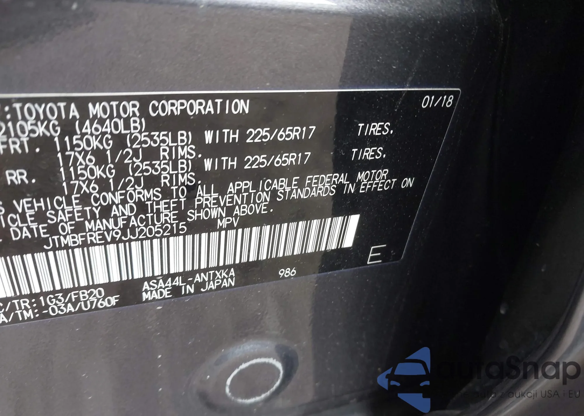 LOT: 43503441 VIN: 2T3W1RFV4MW113529