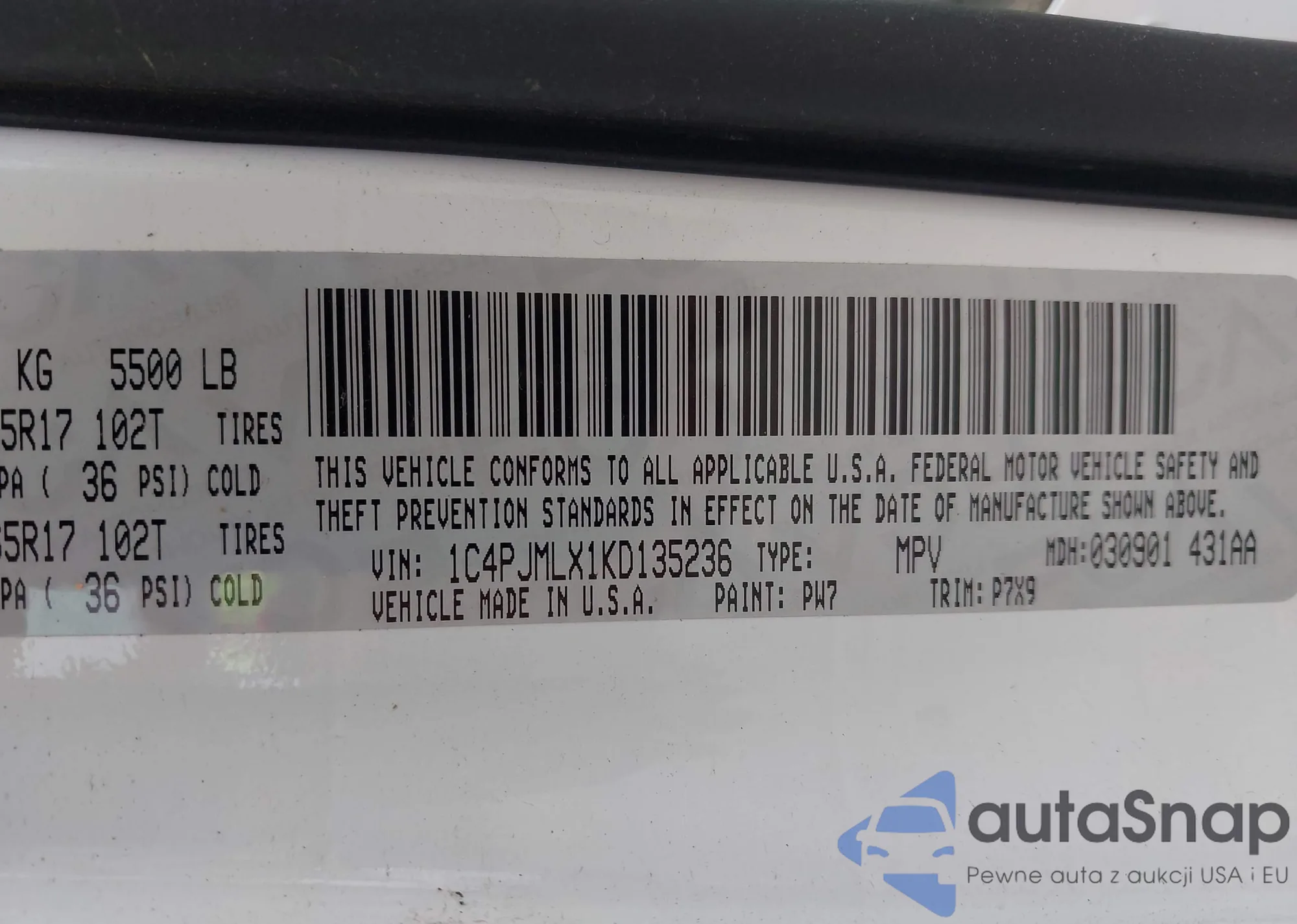 • VIN 1C4PJMLX1KD135236