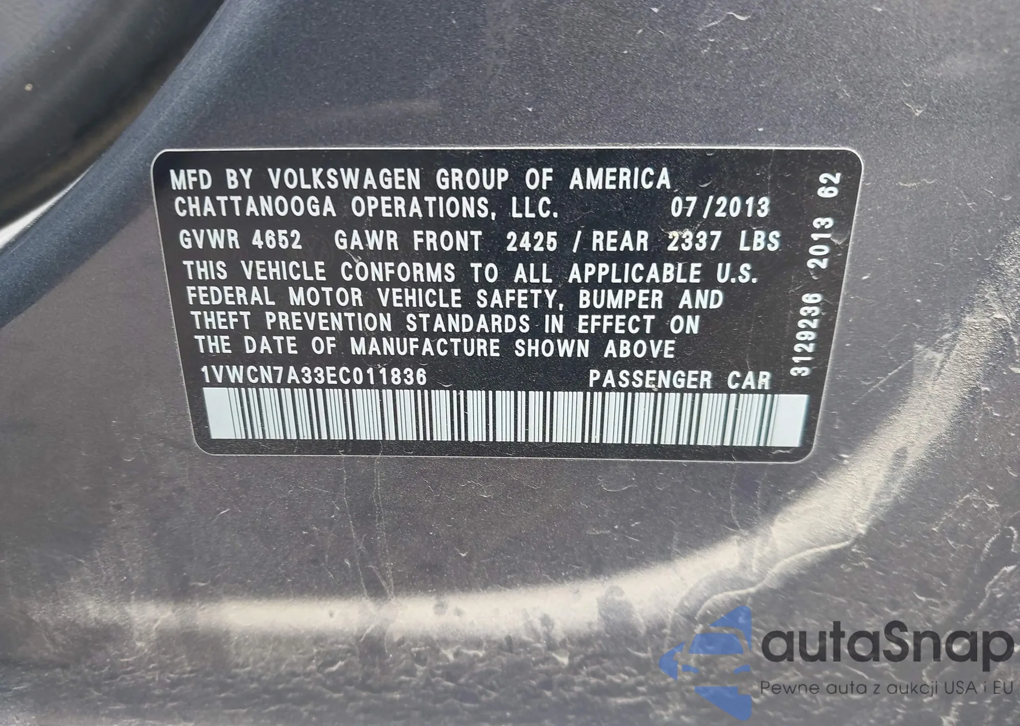 • VIN 1HGCP2F70BA012611