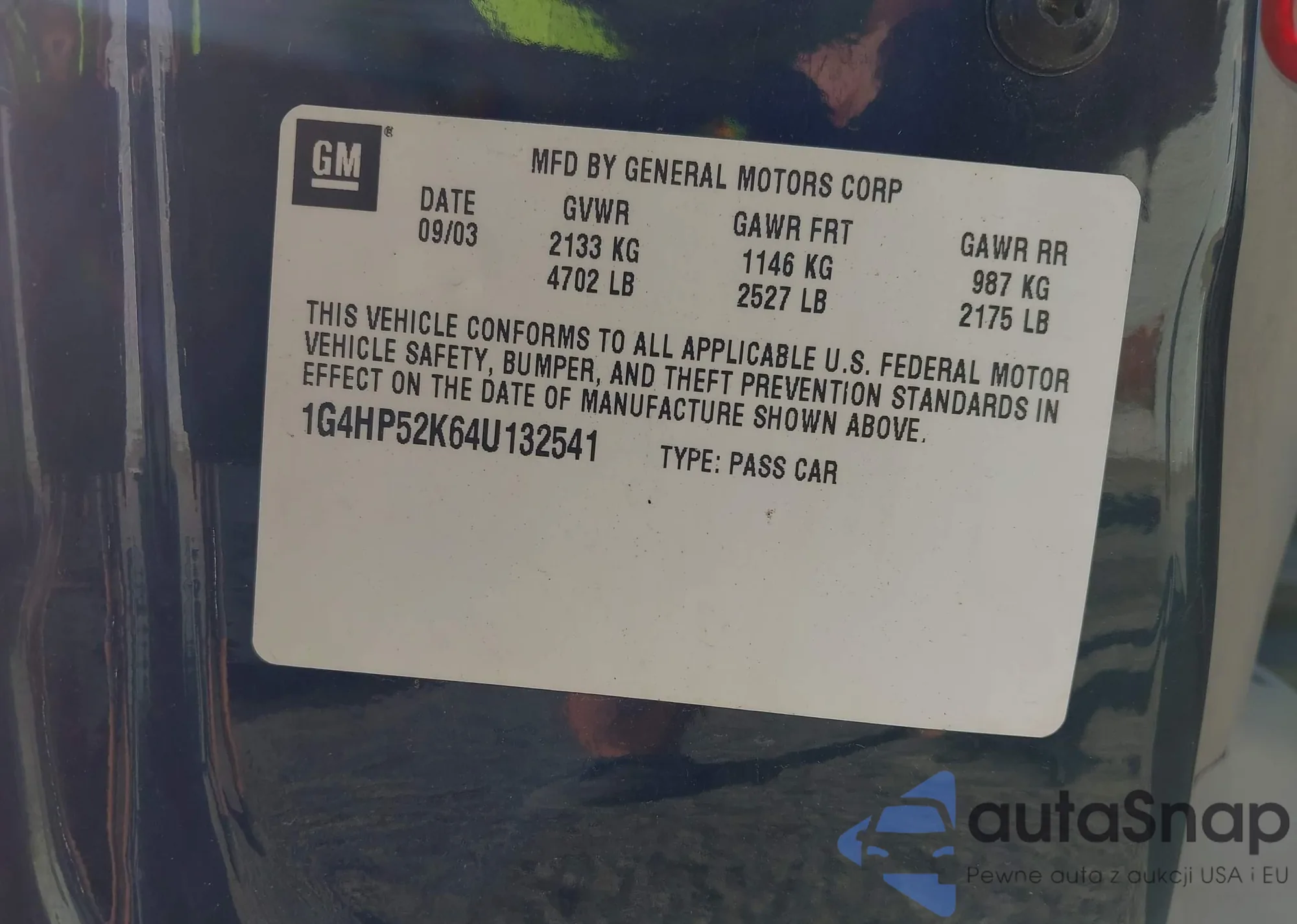 LOT: 43343466 VIN: 1G4HP52K64U132541