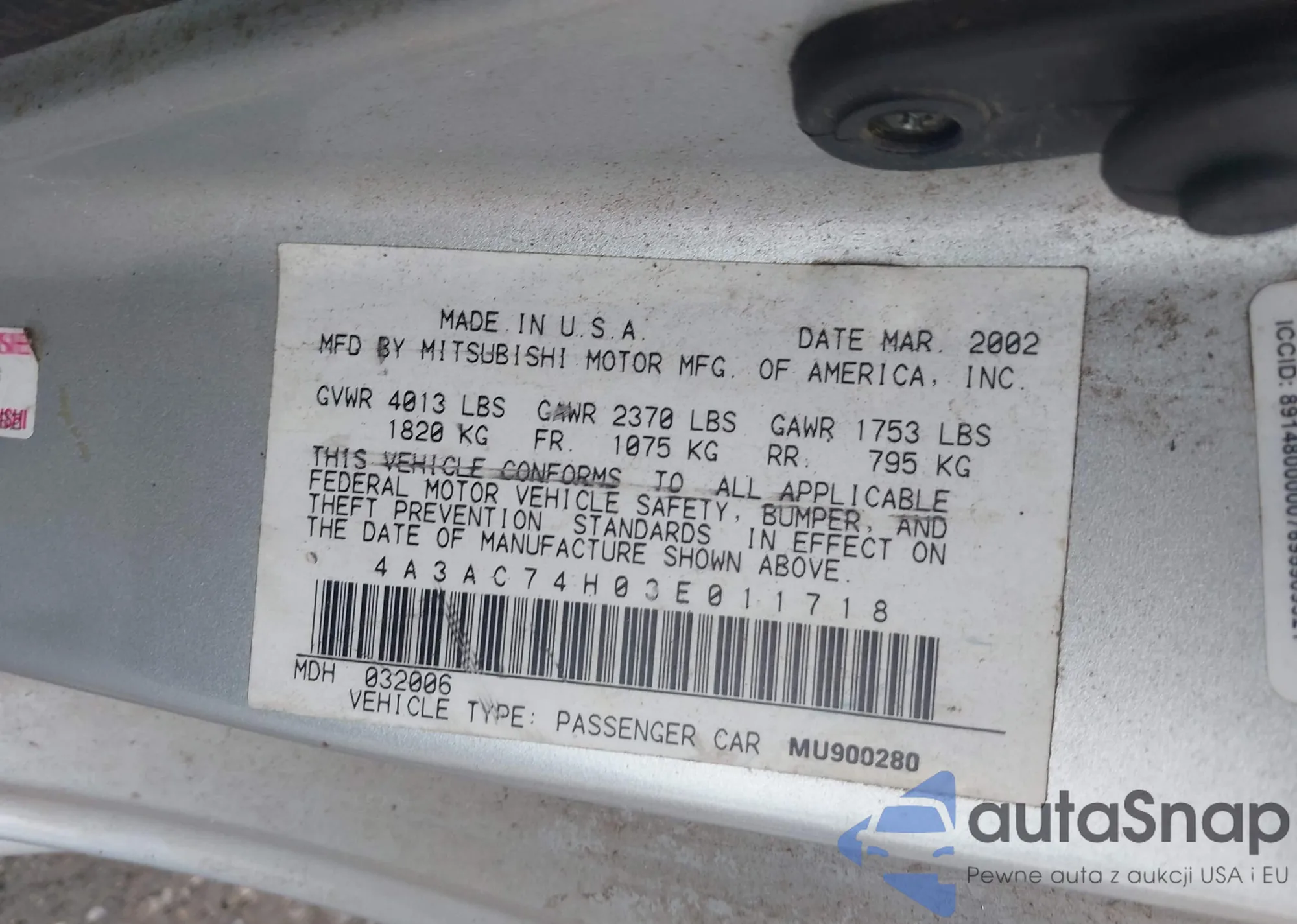 • VIN 4A3AC74H03E011718