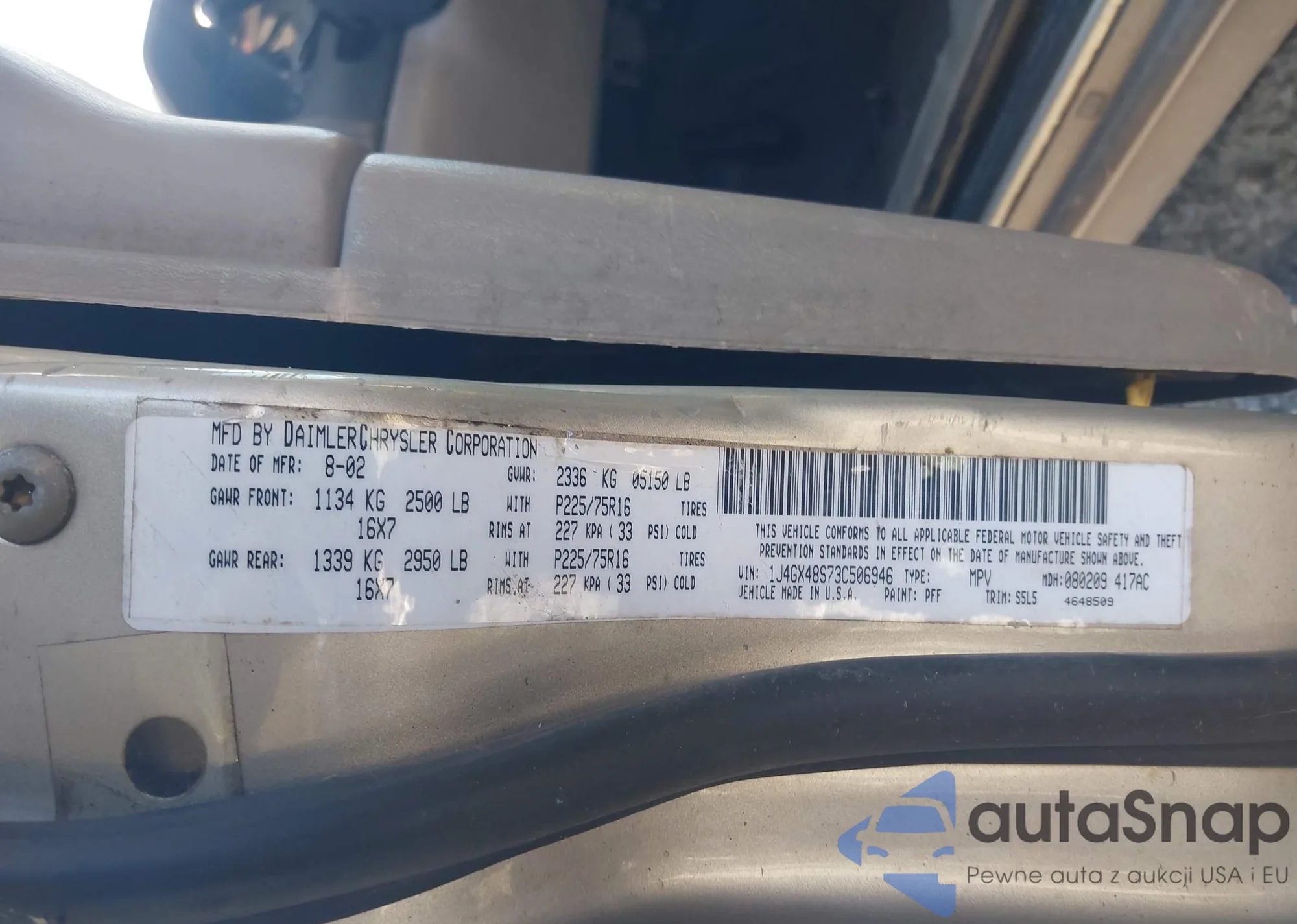 LOT: 43597346 VIN: 1J4GX48S73C506946