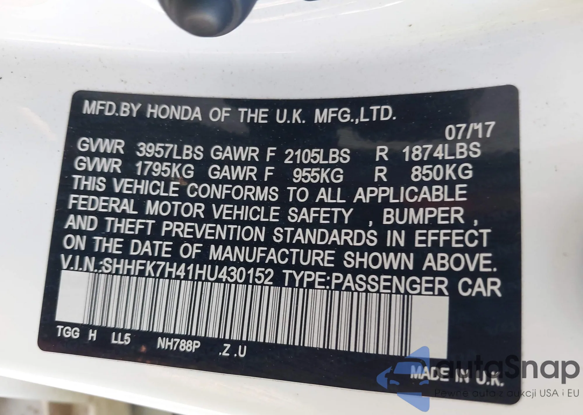 • VIN SHHFK7H41HU430152