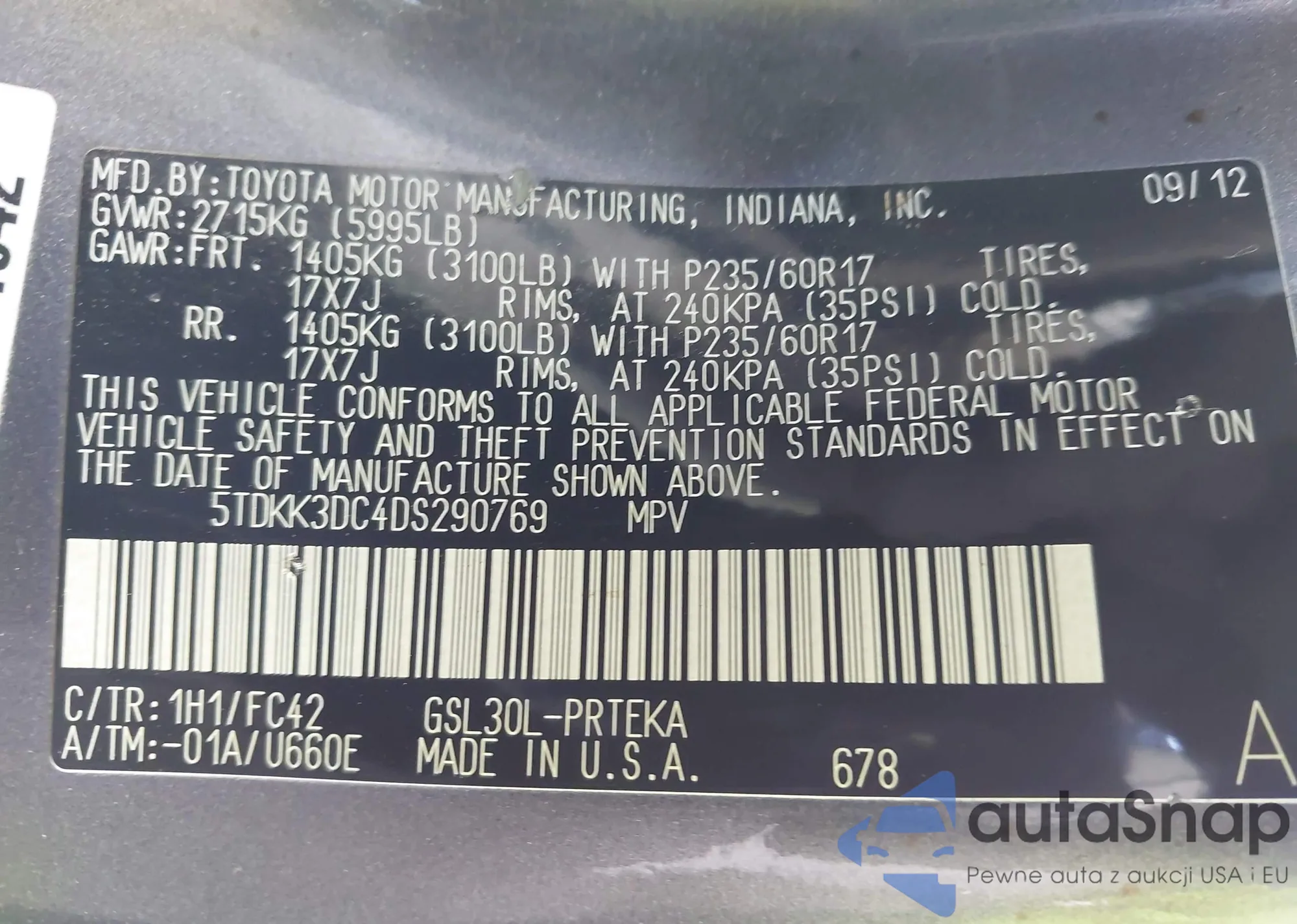 • VIN 5TDKK3DC4DS290769