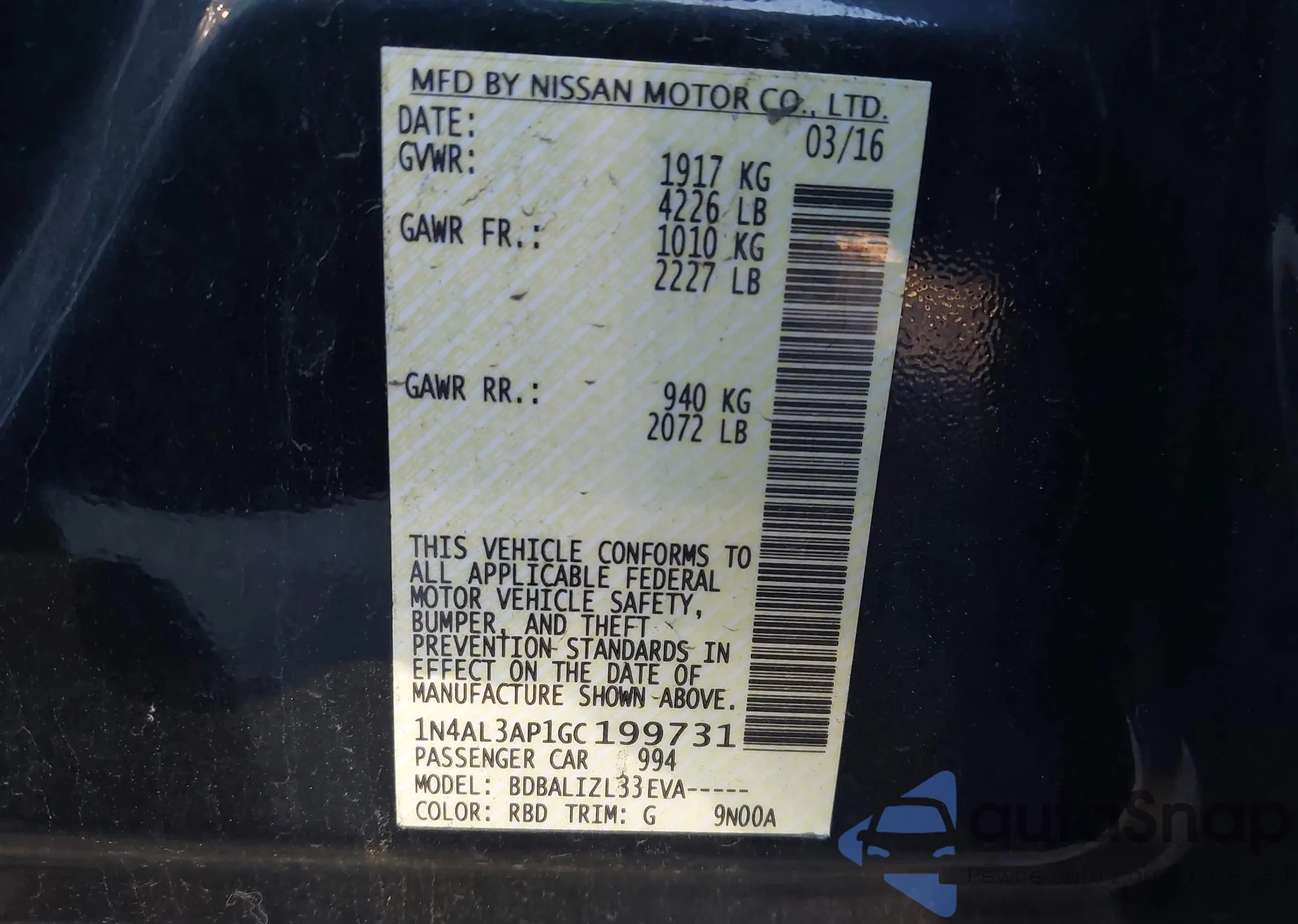 • VIN 1N4AL3AP1GC199731