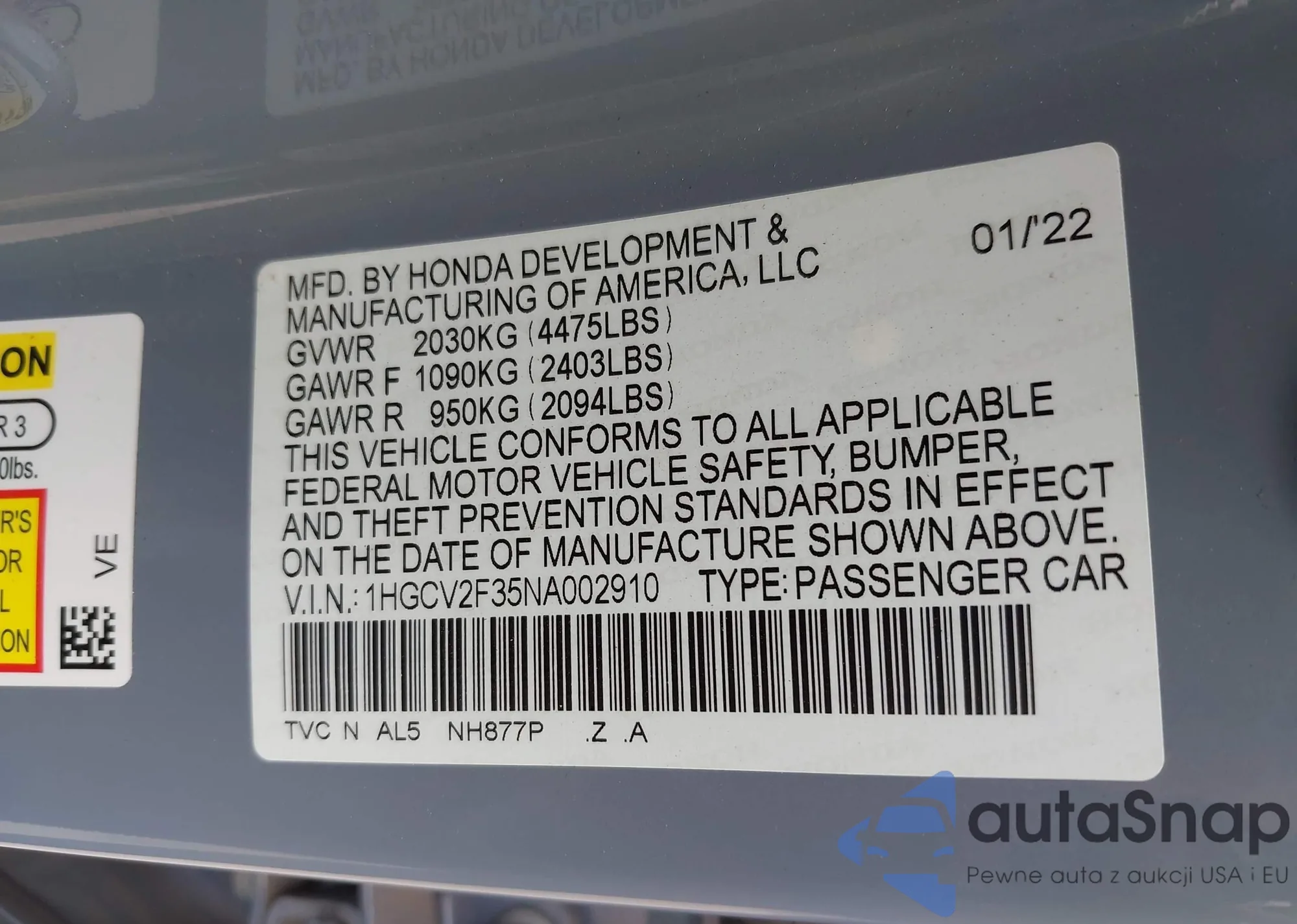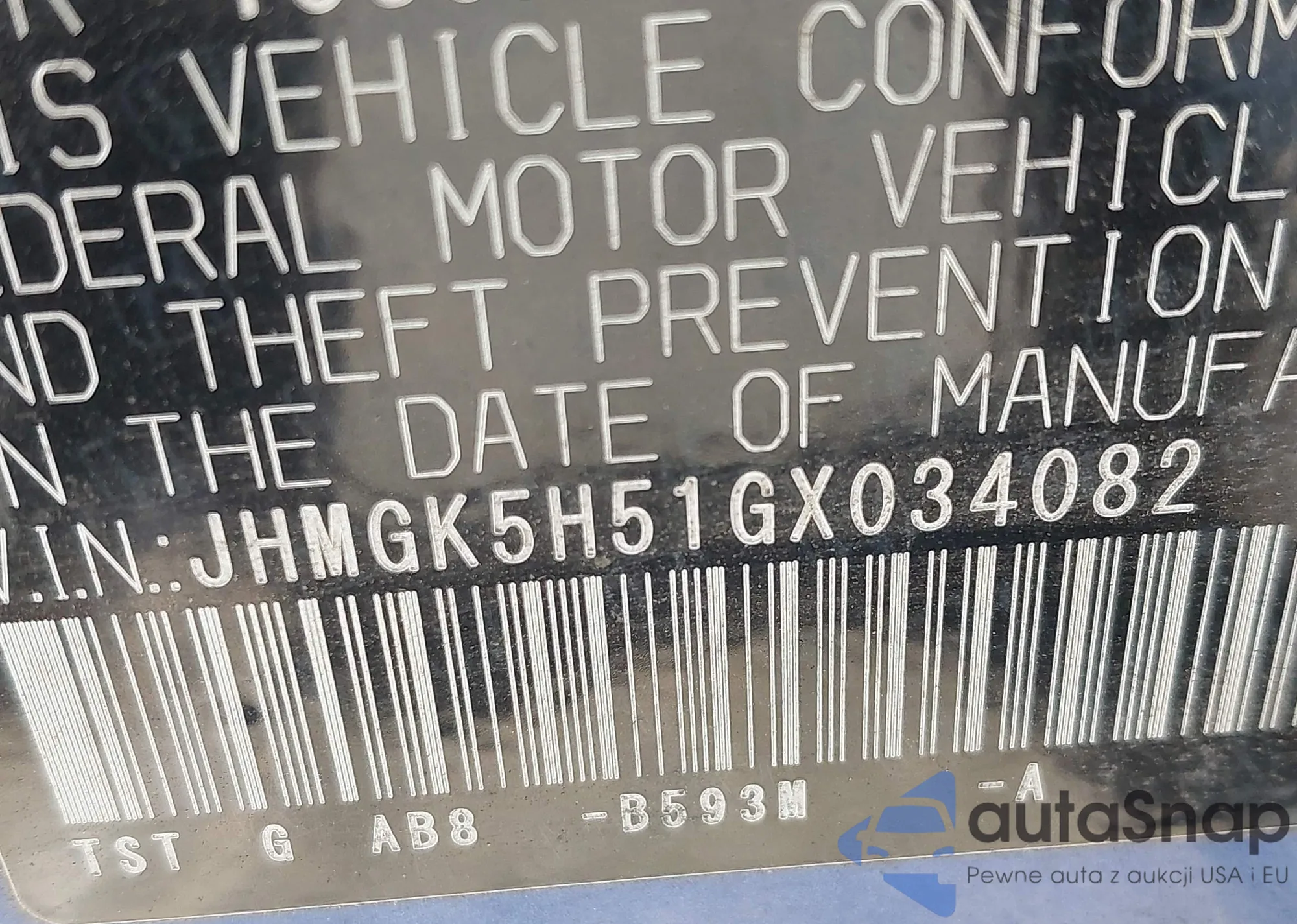LOT: 43504923 VIN: 3HGCM56384G701503