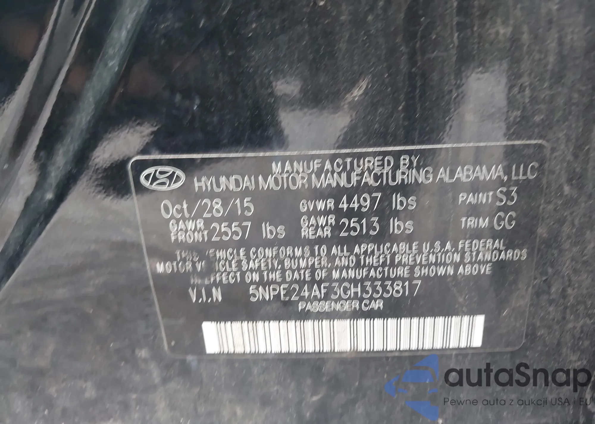 • VIN 5NPE24AF3GH333817