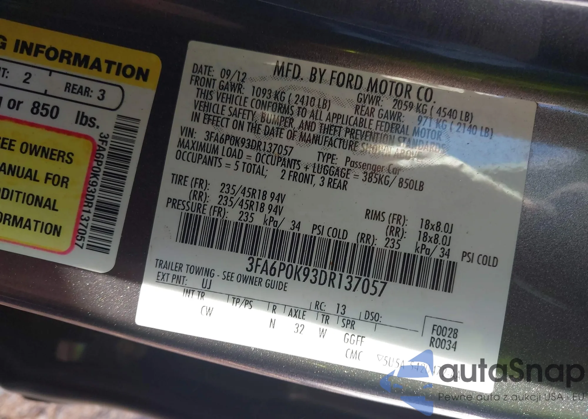 LOT: 43489651 VIN: 3FA6P0K93DR137057