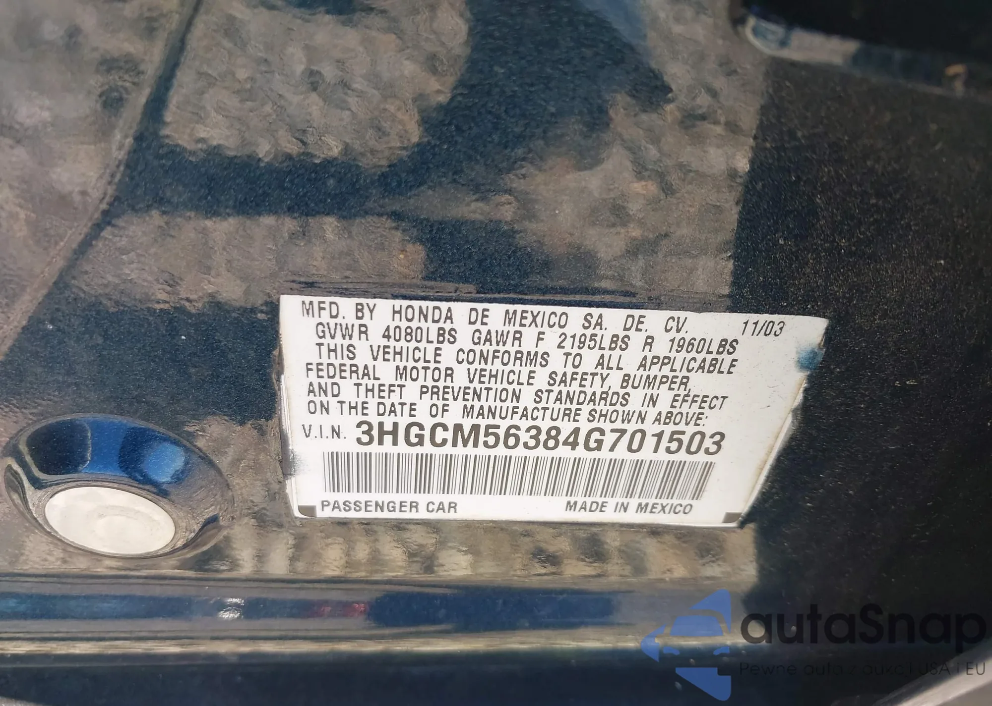 • VIN 3HGCM56384G701503