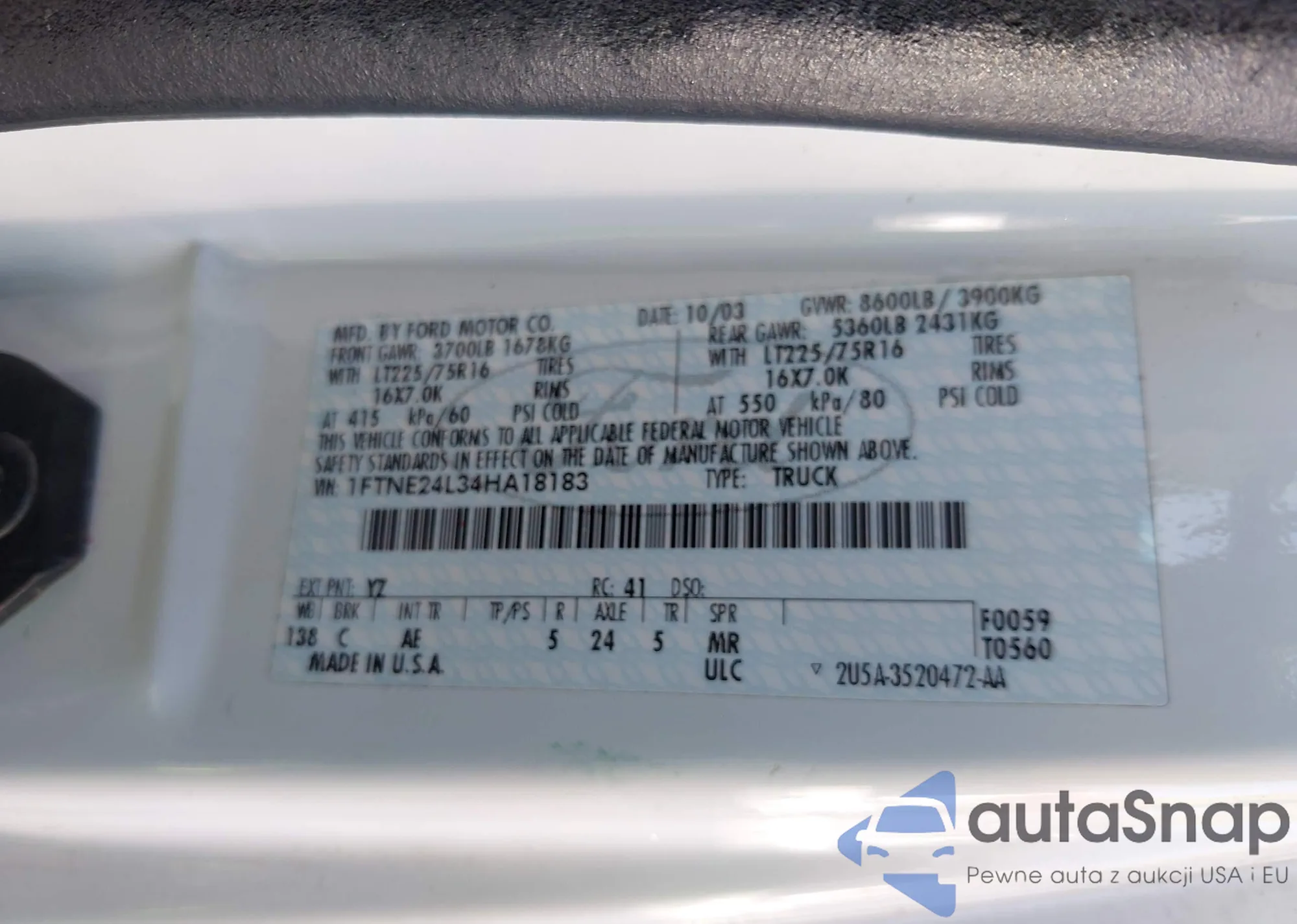 • VIN 1FTNE24L34HA18183
