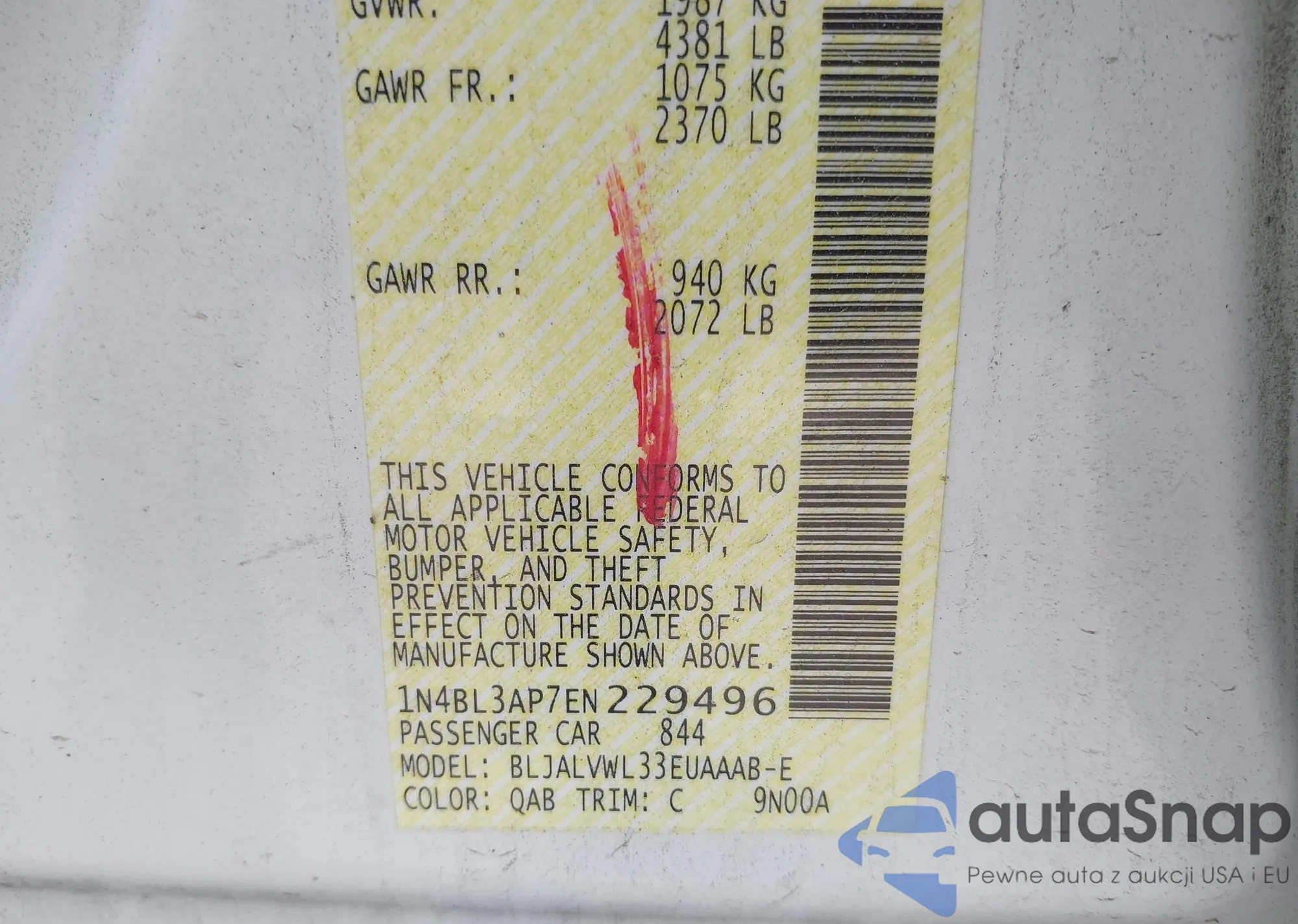 • VIN 1N4BL3AP7EN229496