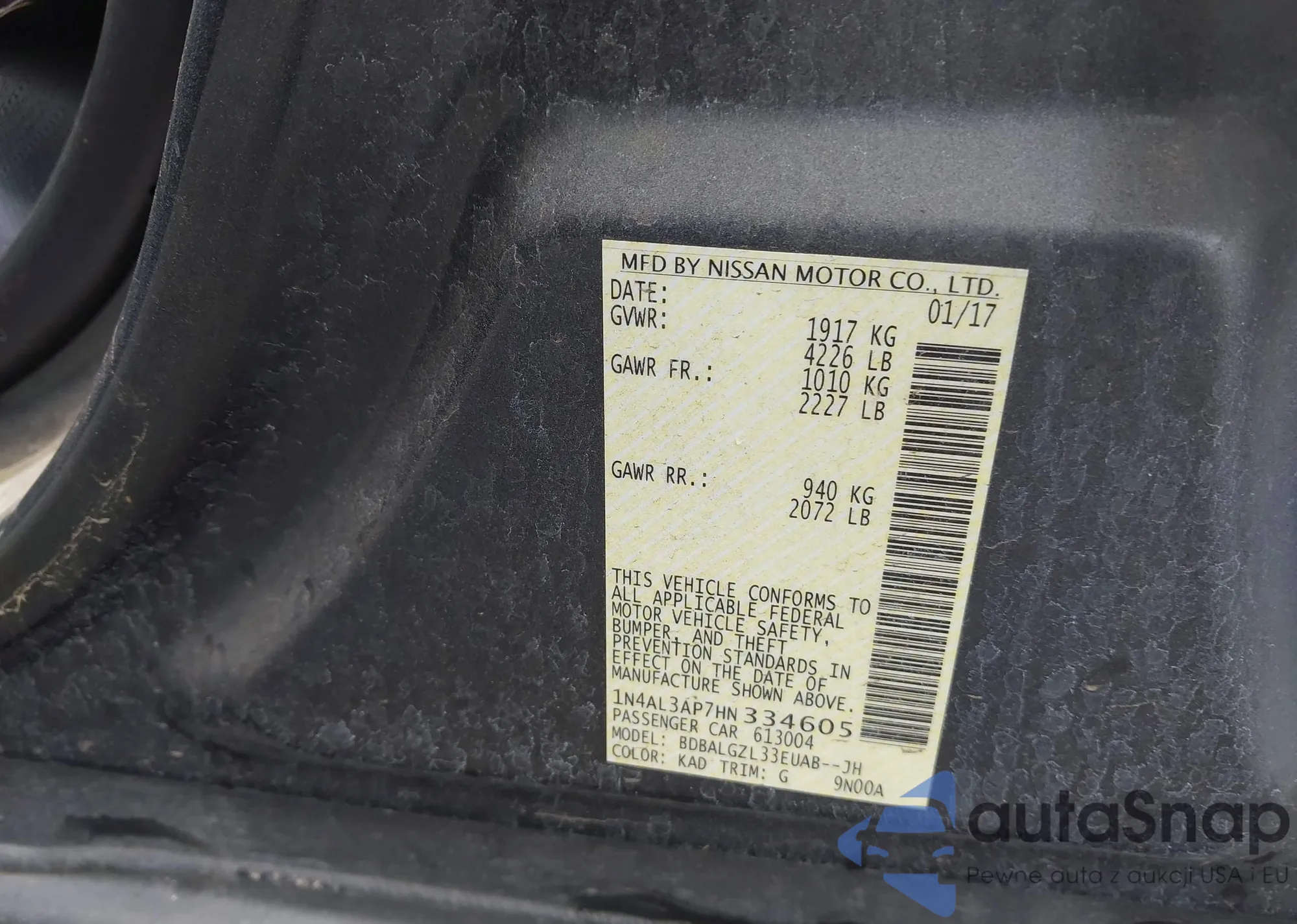 • VIN 1N4AL3AP7HN334605