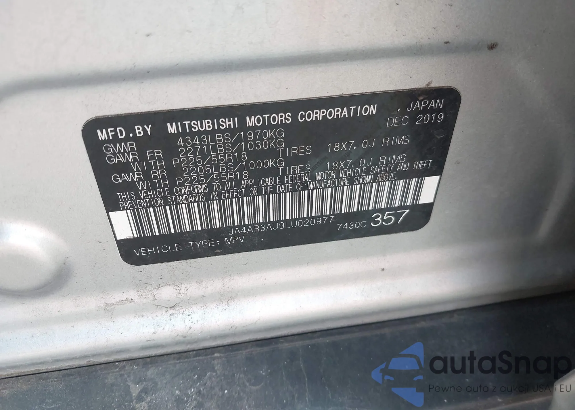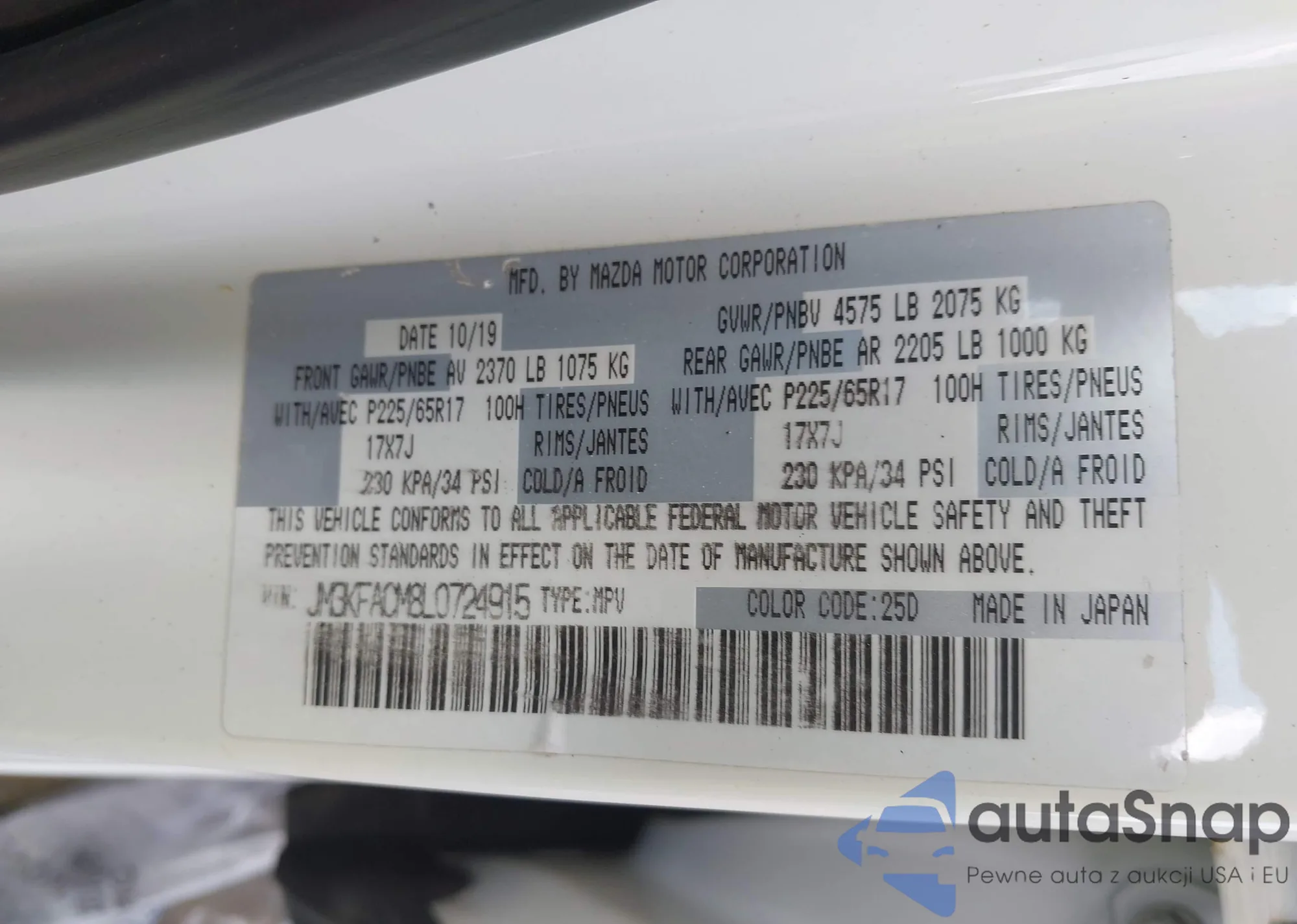 LOT: 43105975 VIN: JM3KFACM8L0724915