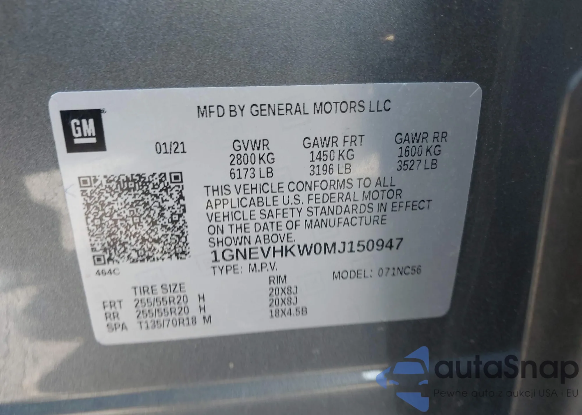 • VIN 1GNEVHKW0MJ150947