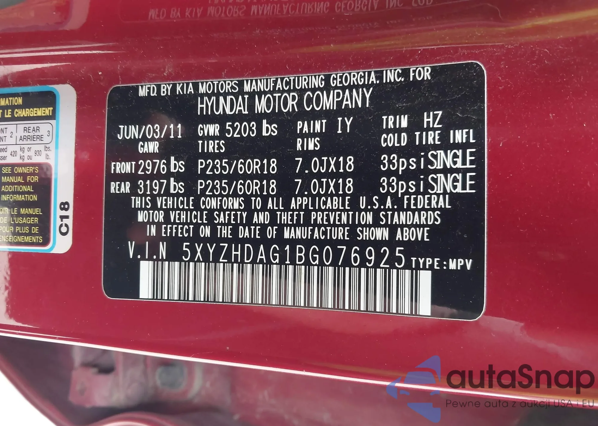 LOT: 43204667 VIN: 5XYZHDAG1BG076925