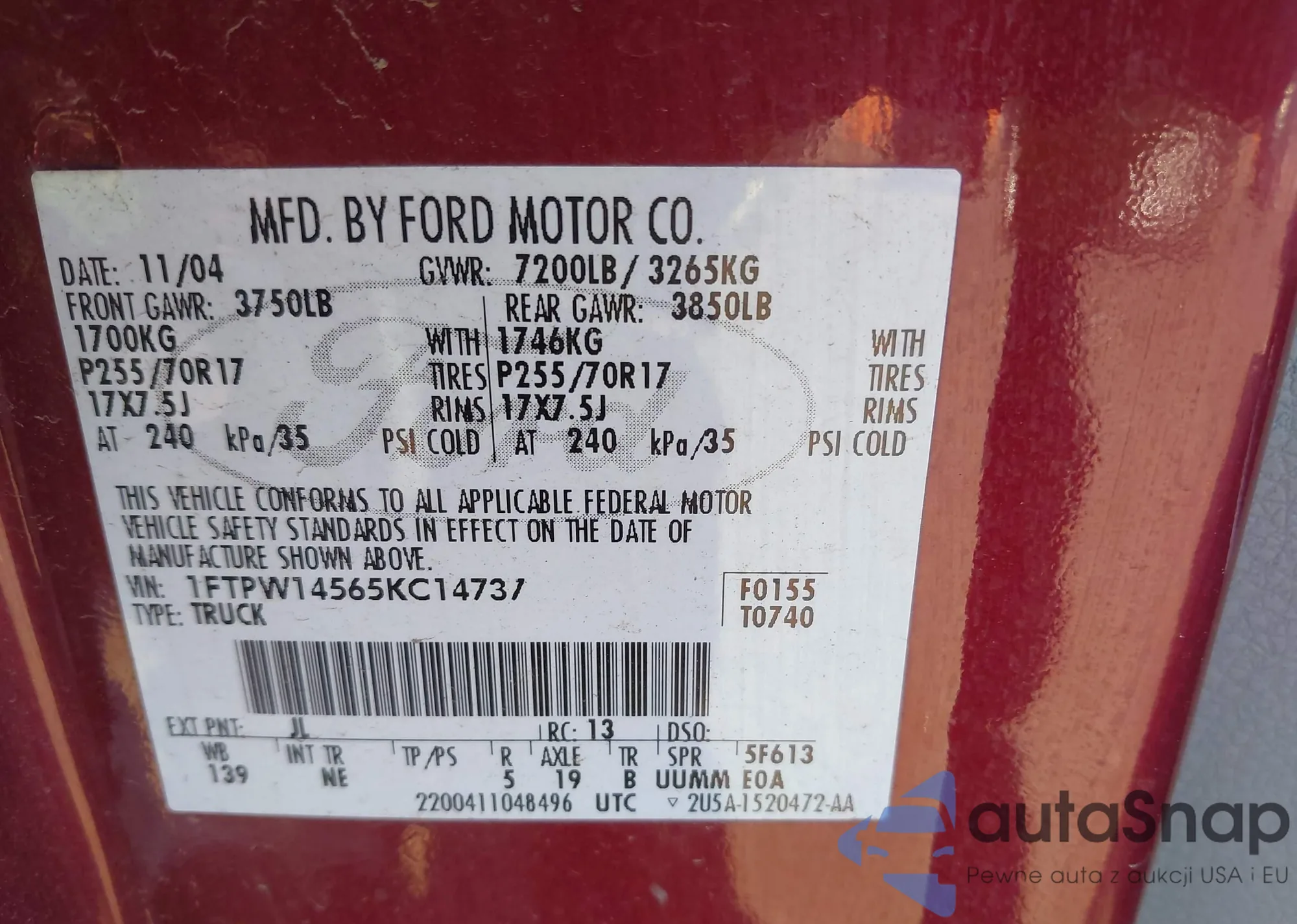 LOT: 43445700 VIN: 1FMCU0GD7JUA96337
