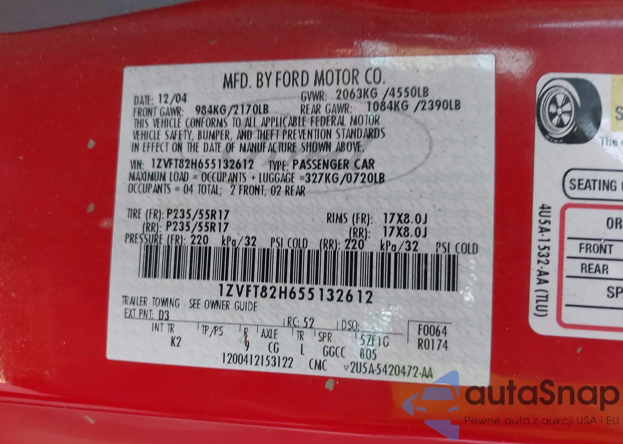 LOT: 43610659 VIN: JF1SG63605H754103