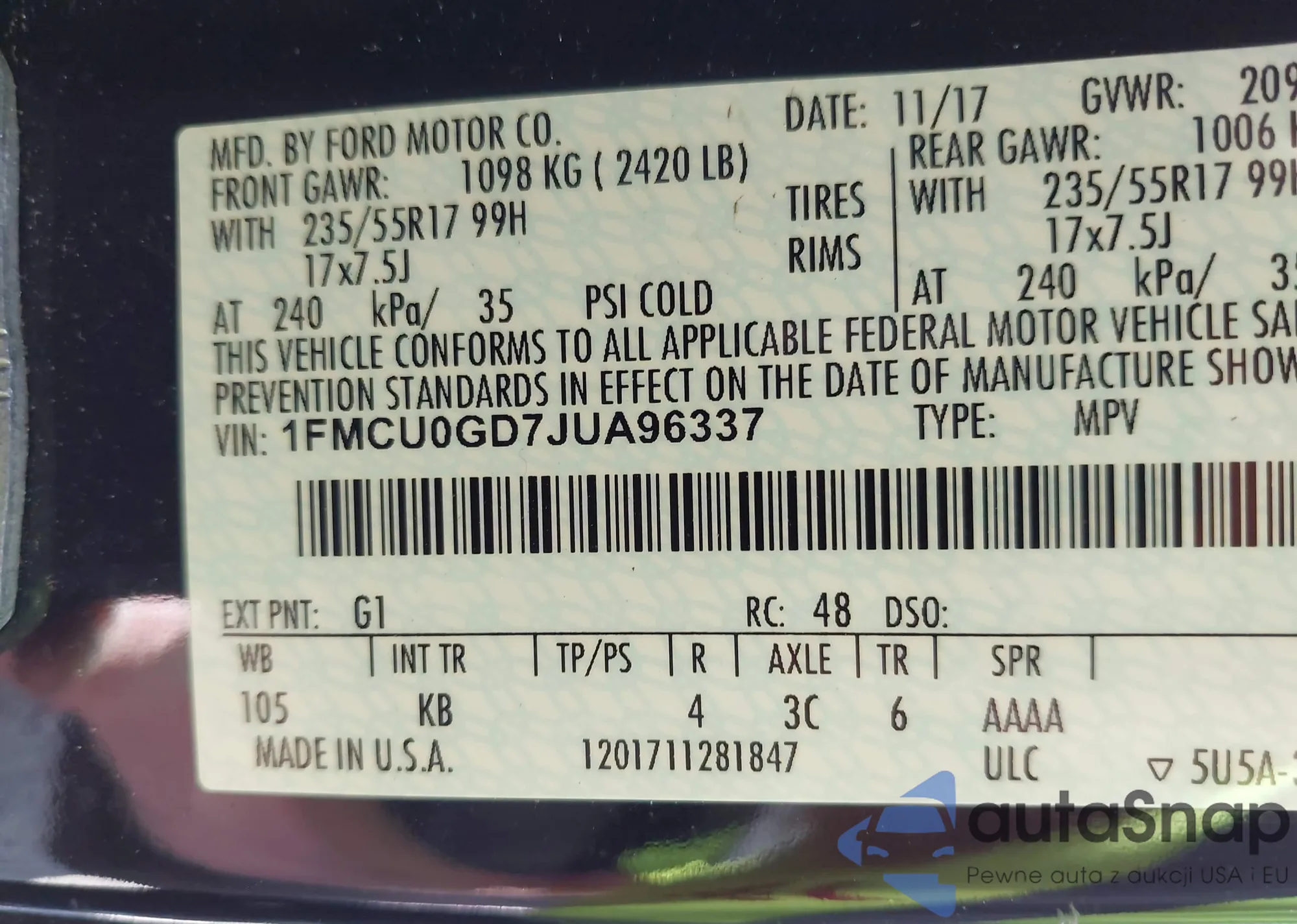 • VIN 1FMCU0GD7JUA96337