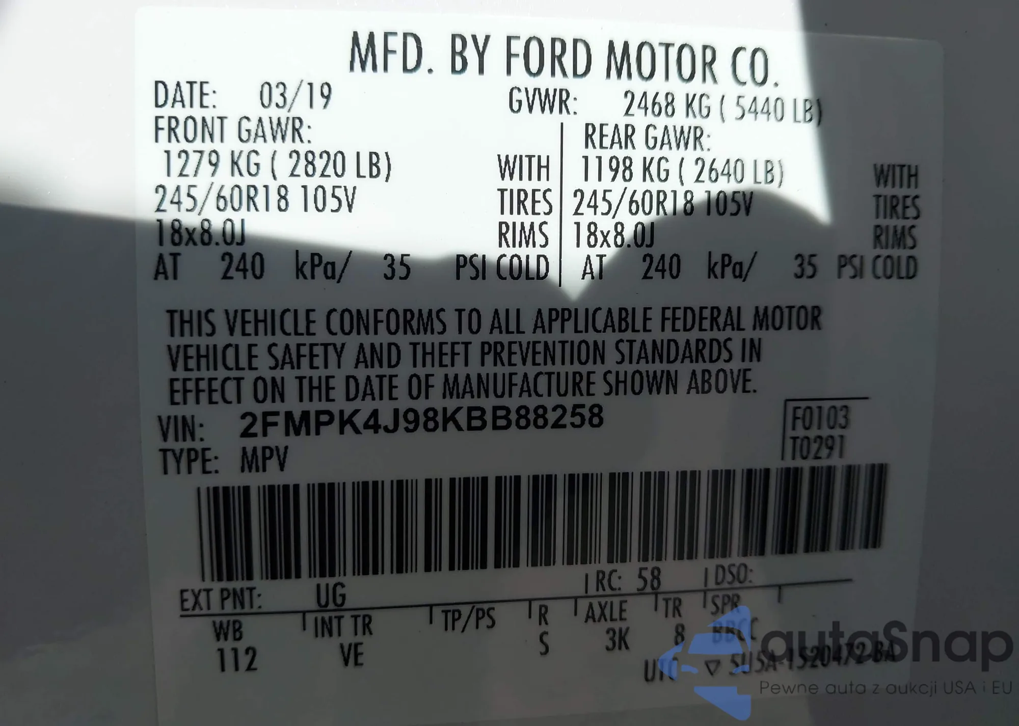 • VIN 2FMPK4J98KBB88258