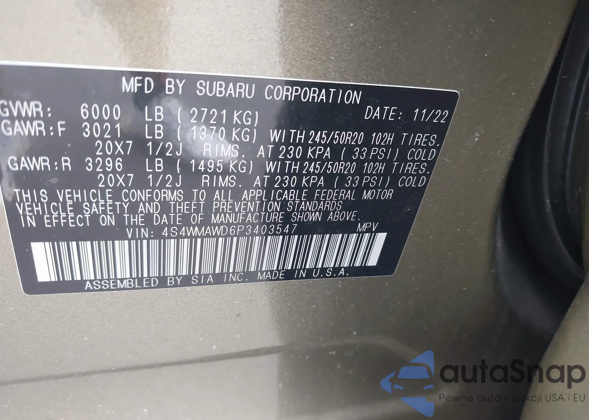 LOT: 43439246 VIN: 5TFNC5DB7PX018907