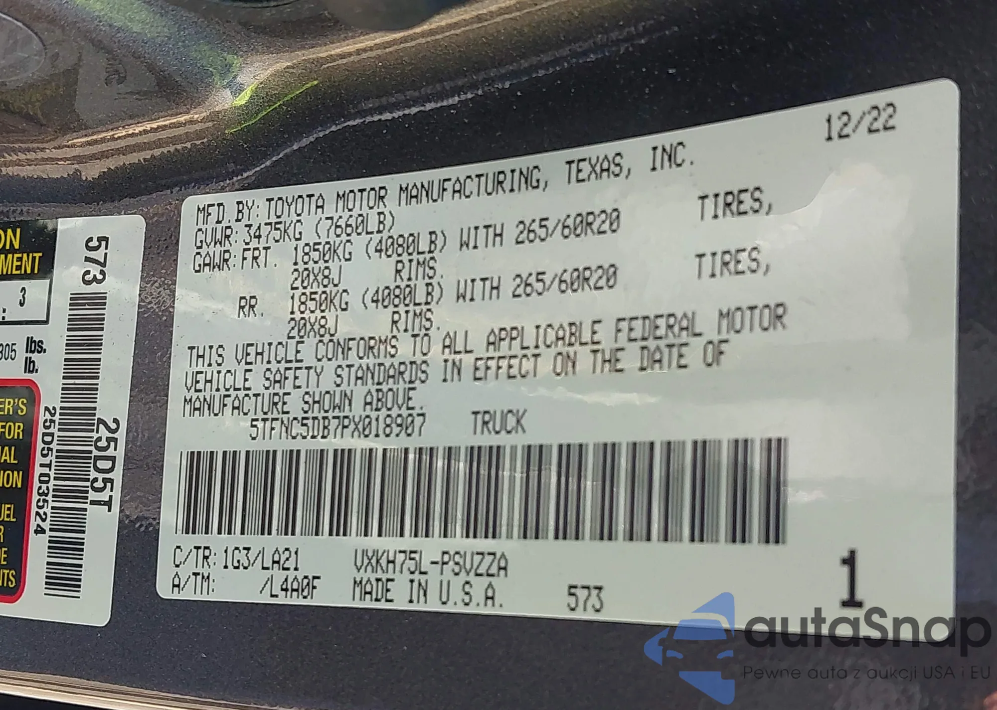• VIN 5TFNC5DB7PX018907