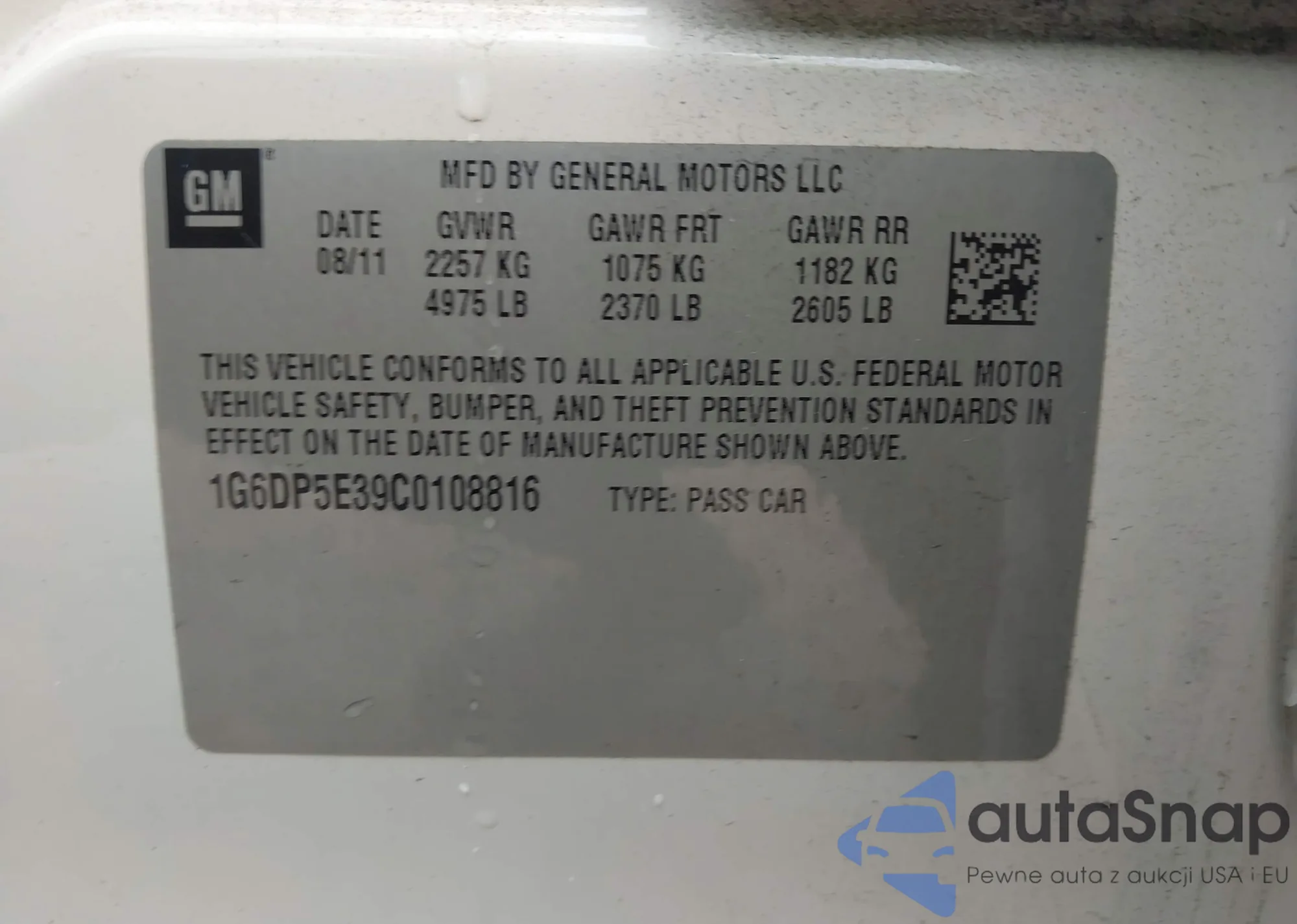 • VIN 1G6DP5E39C0108816