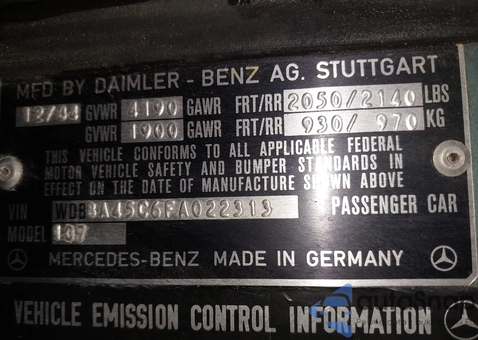 • VIN WDBBA45C6FA022313