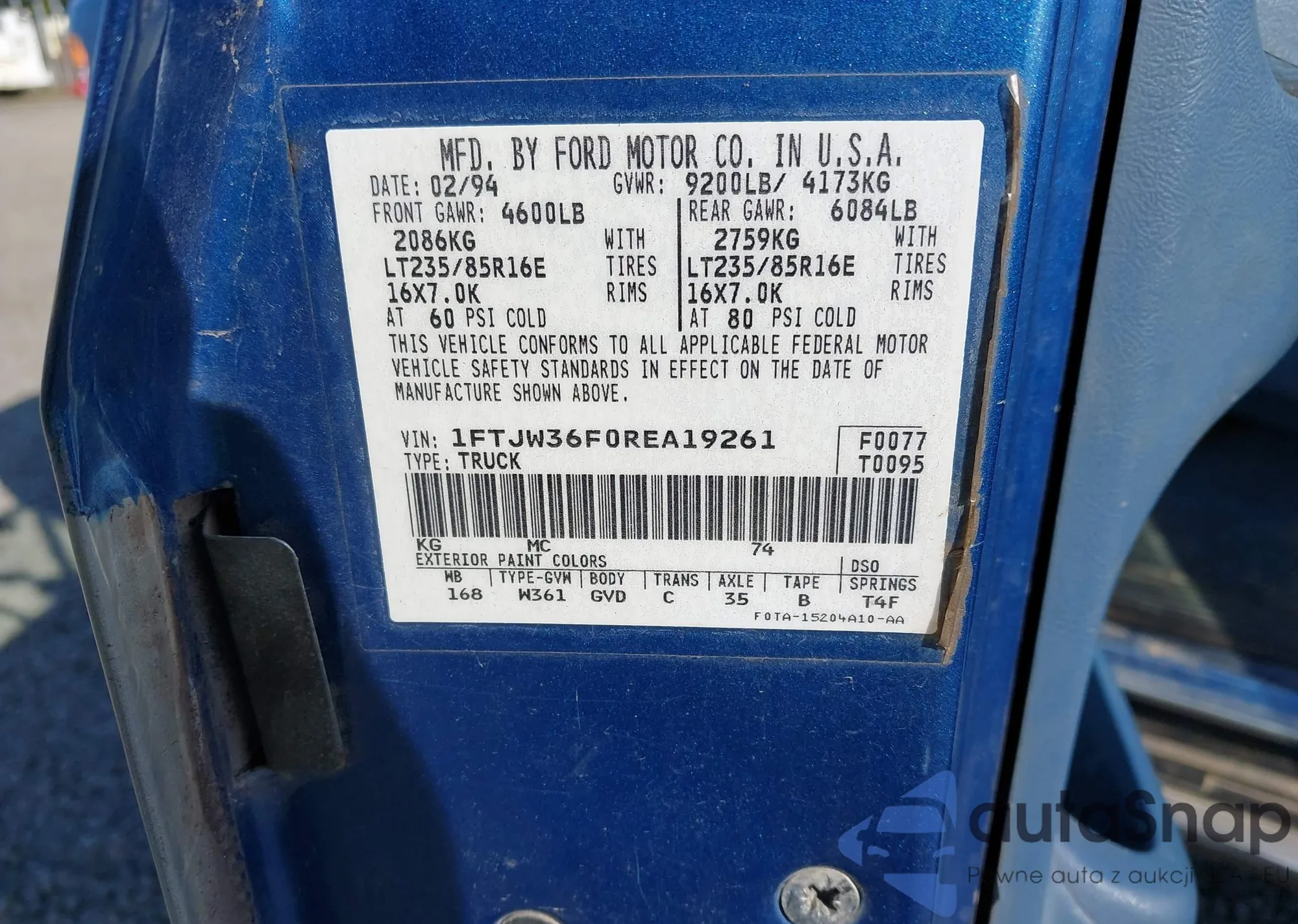 • VIN JTMBF33V595016923