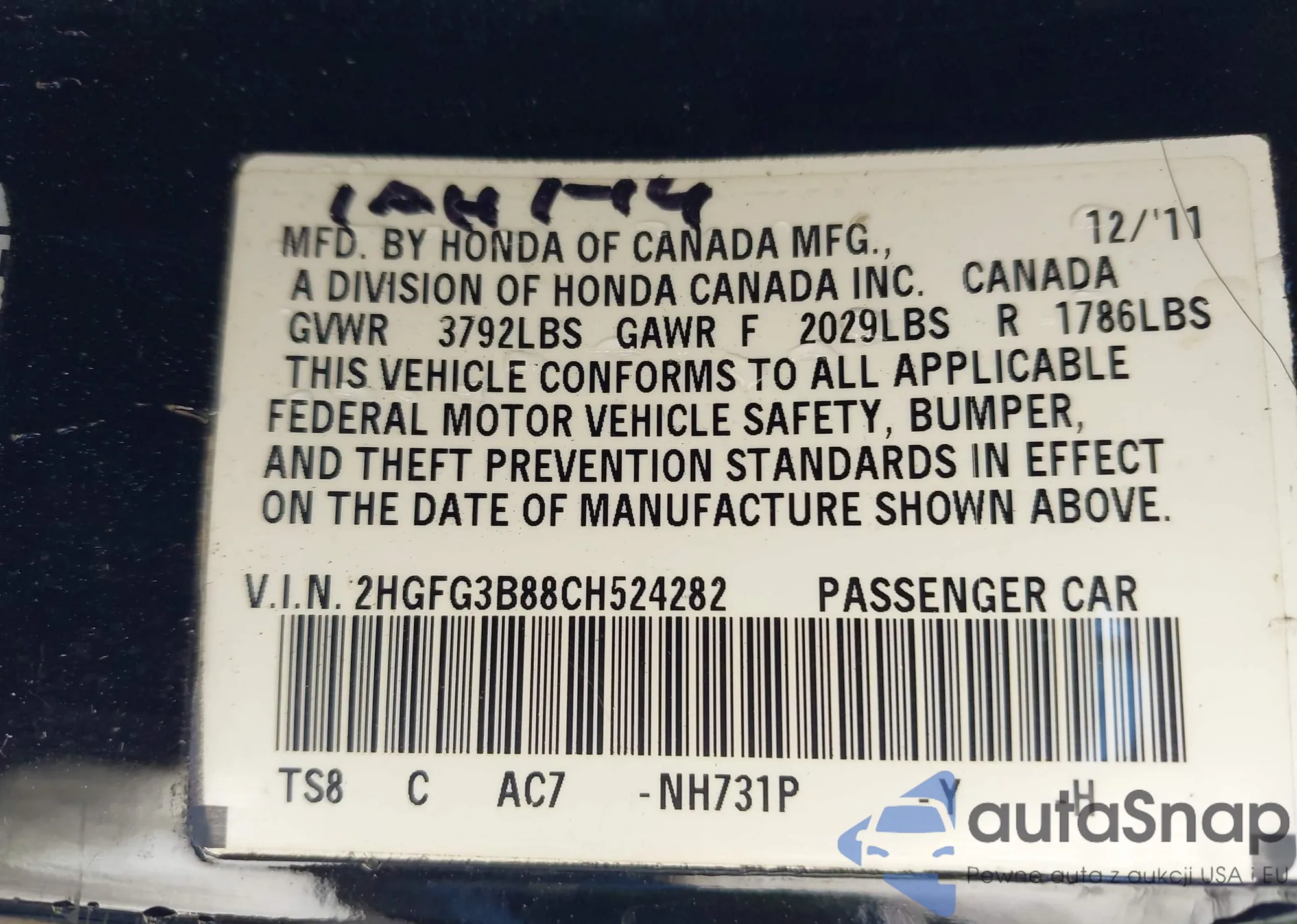LOT: 43144377 VIN: 1HGCM56835A190441