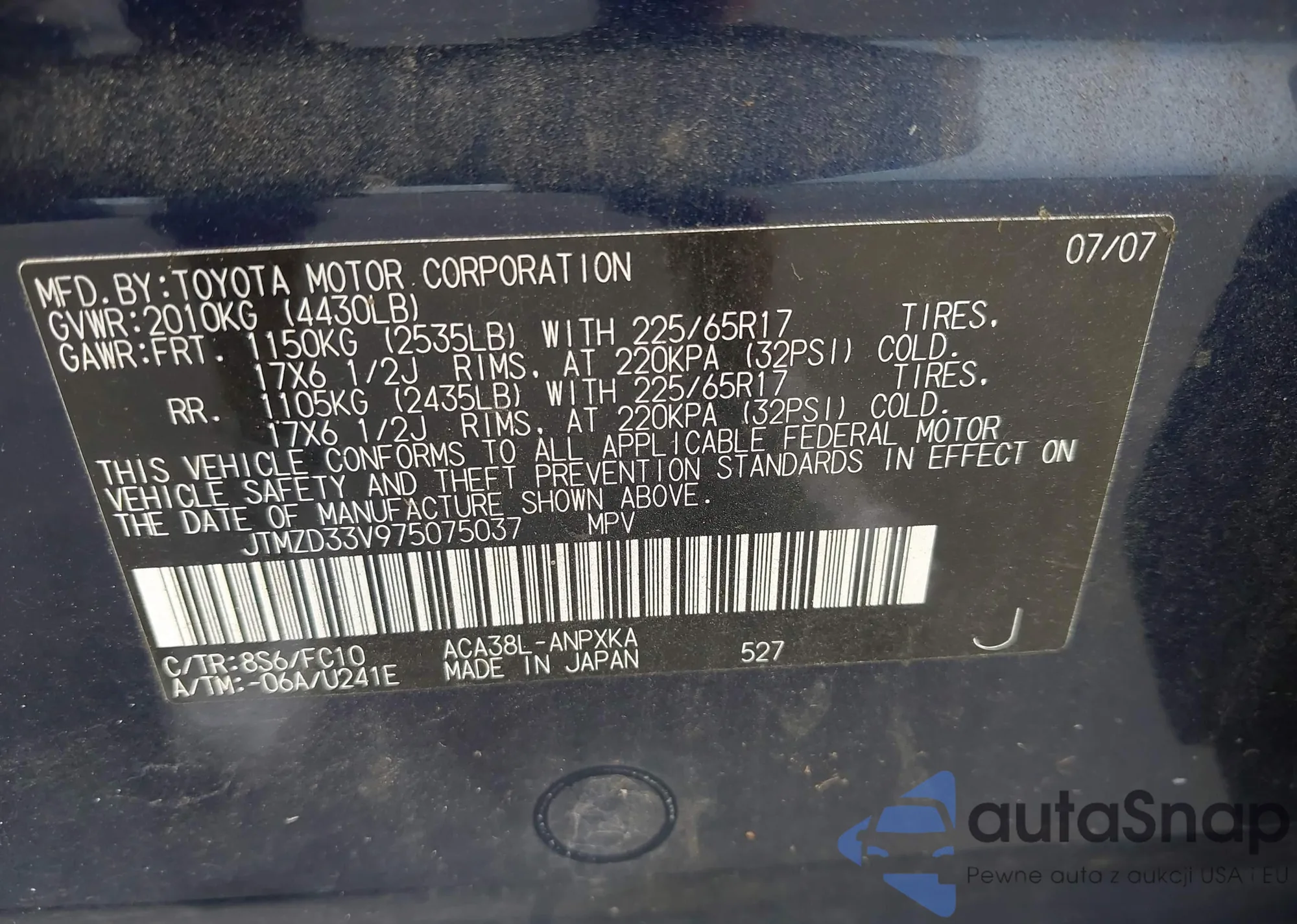 • VIN JTMZD33V975075037